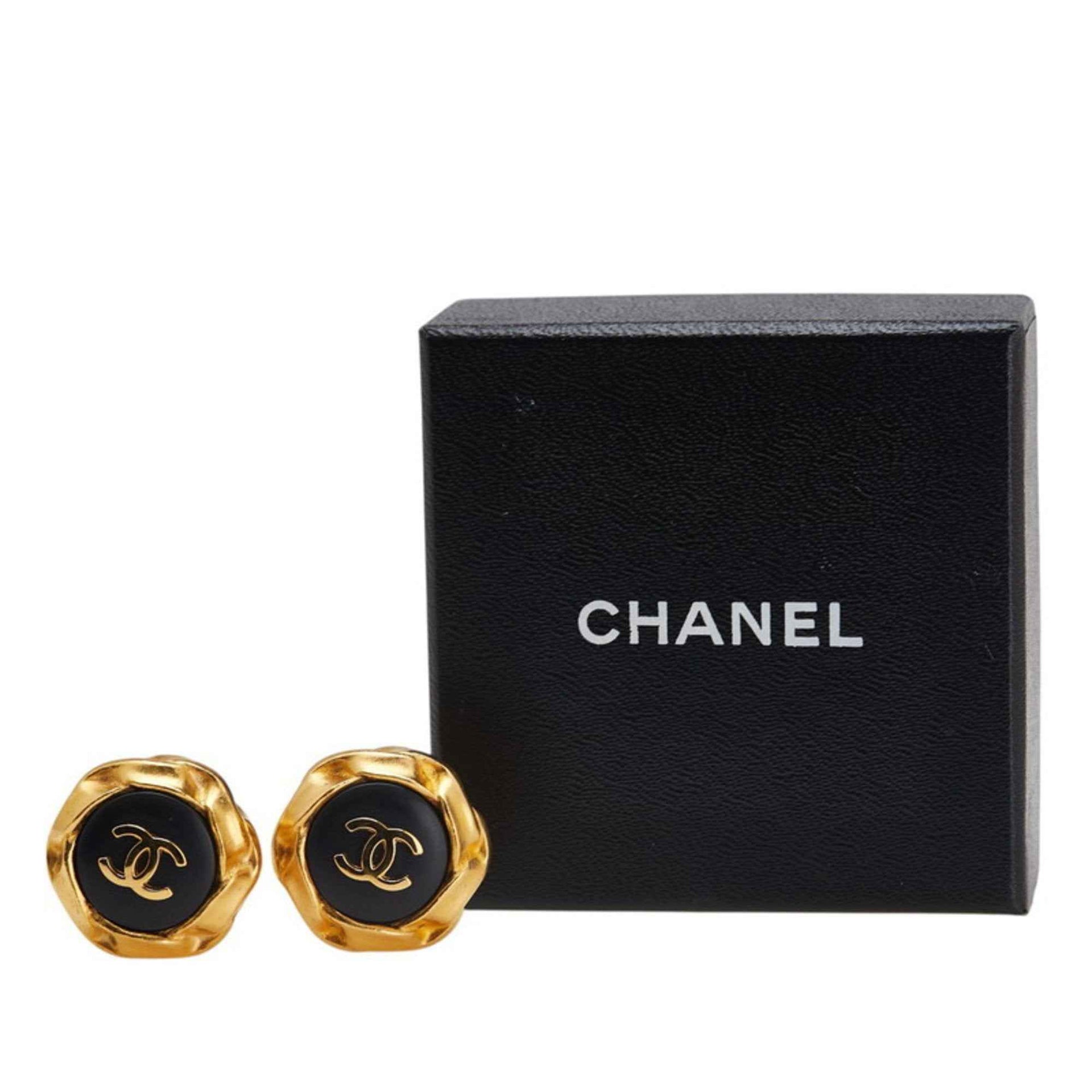 Vintage Chanel Coco Mark Chain Earrings, Gold and Black Plated, Women\'s