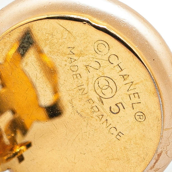Vintage Chanel Coco Mark faux pearl earrings, gold plated, for women.