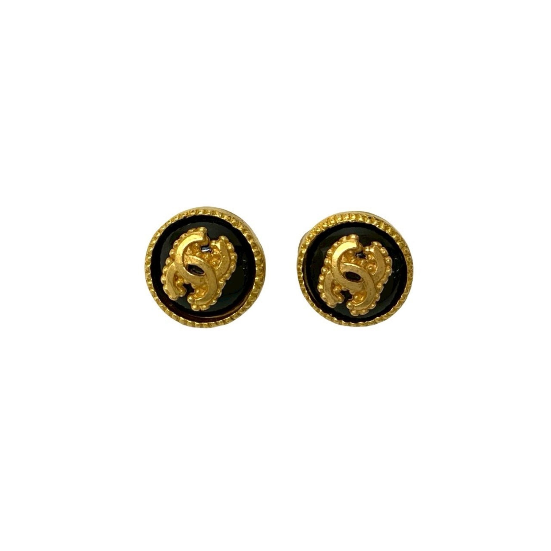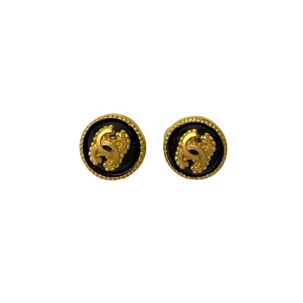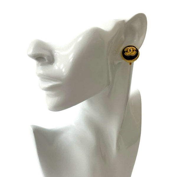 96A CHANEL Vintage Coco Mark Earrings and Ear Cuffs in Gold Black 89902