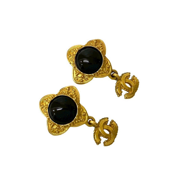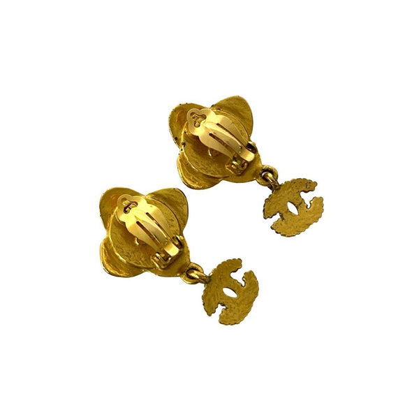 96A CHANEL Vintage Coco Mark Flower Motif Earrings and Ear Cuffs, Gold, 155-8