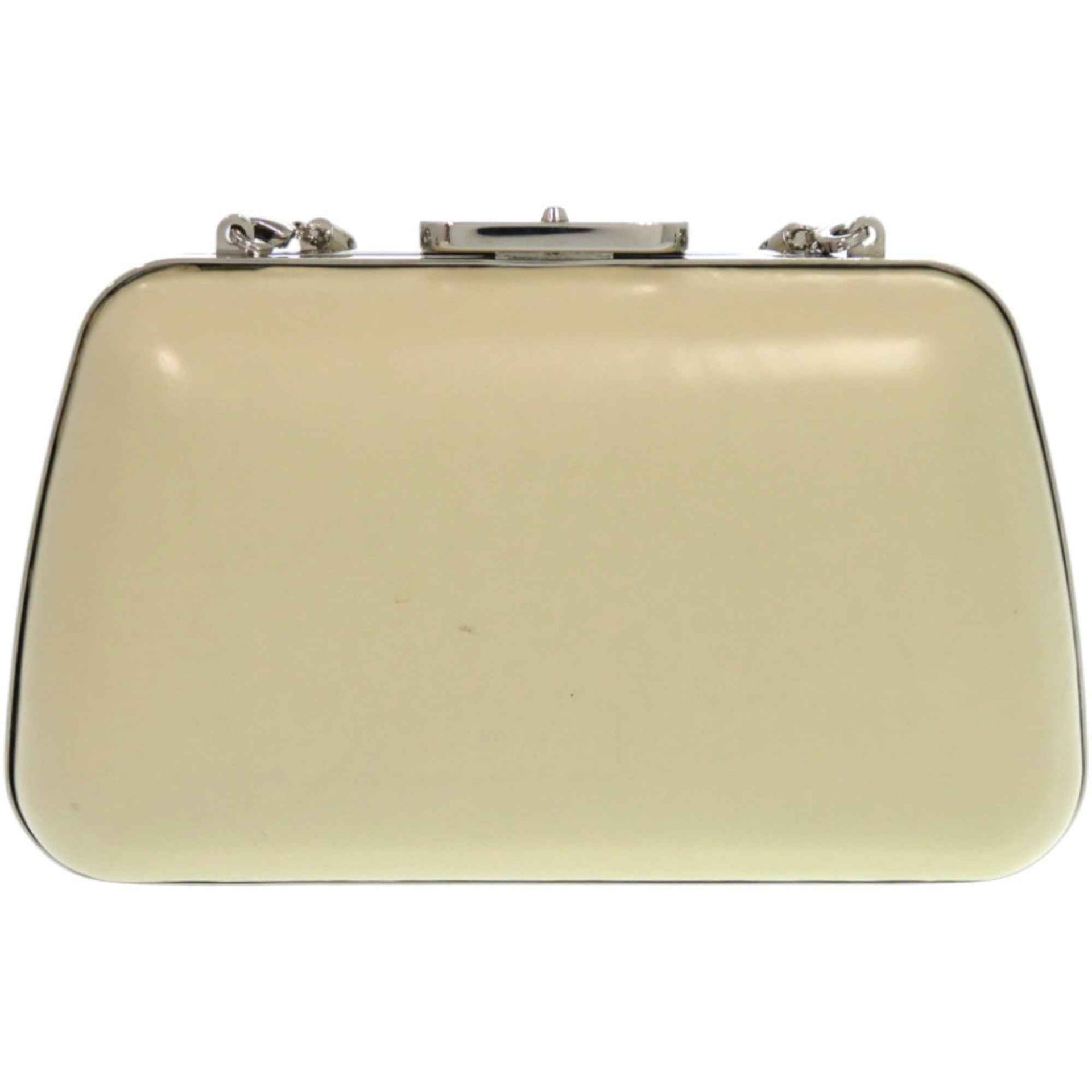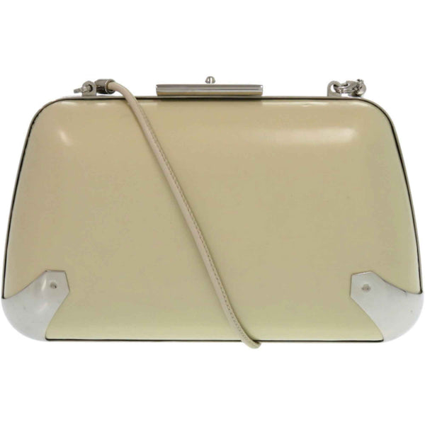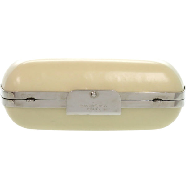 Balenciaga 1518 BALENCIAGA Clasp Purse 1 27276 Leather Metal Silver Hardware Ivory White Shoulder Bag