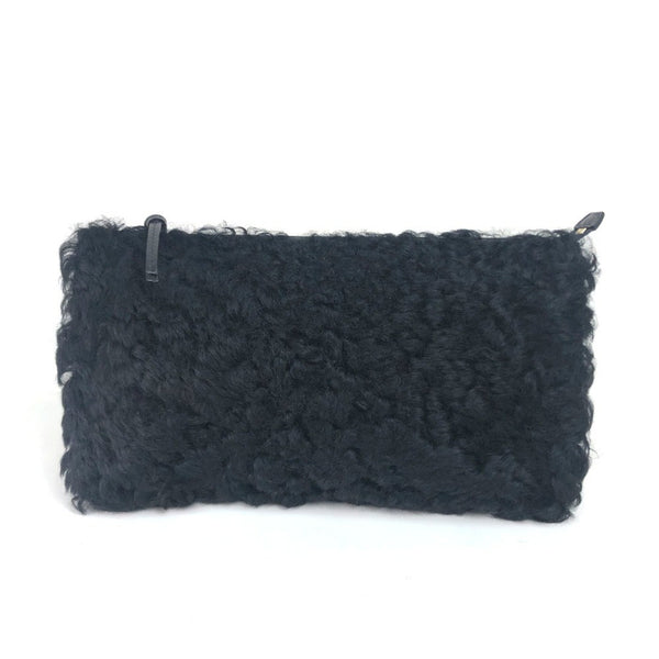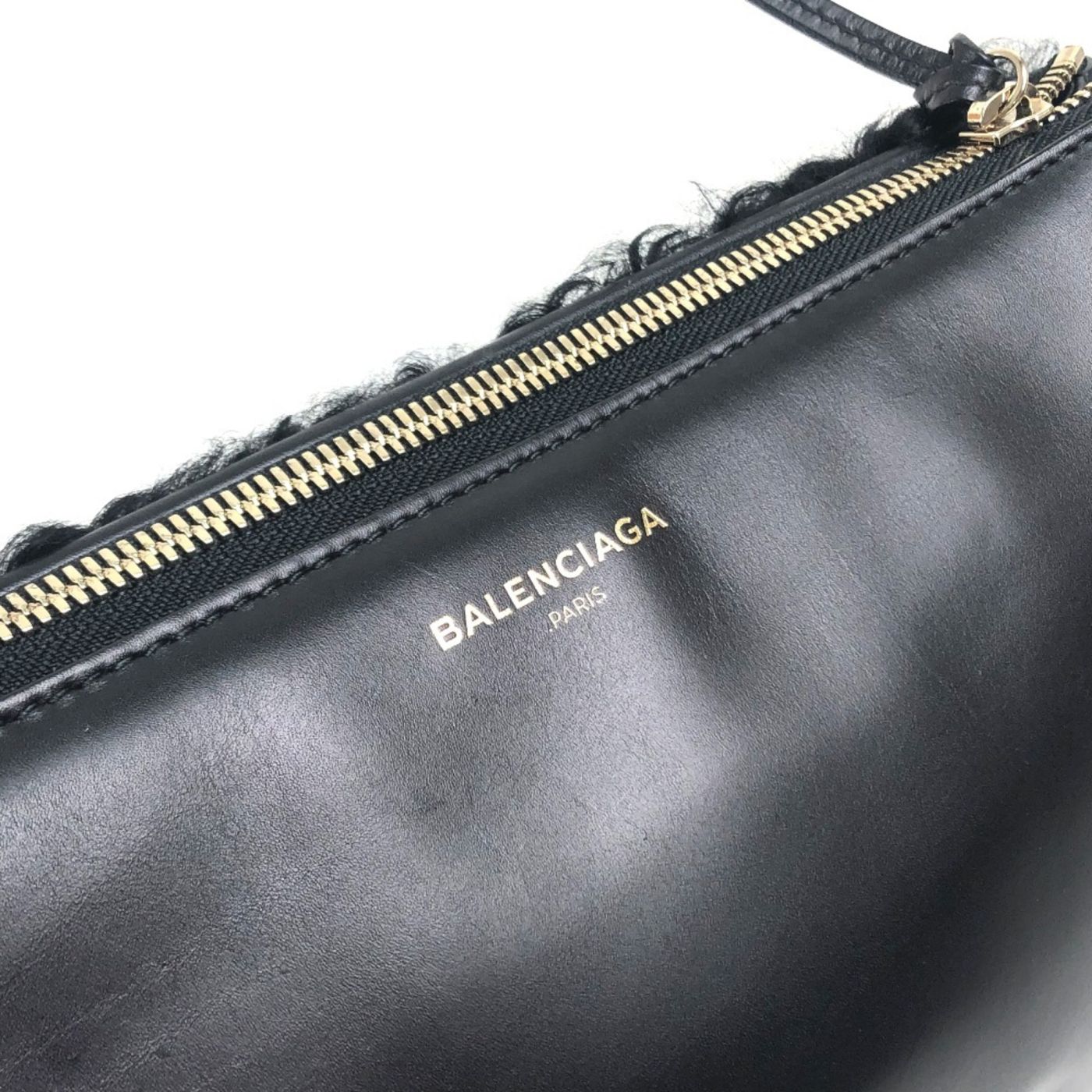 BALENCIAGA 347238 Logo Bag, Second Clutch Mouton Leather, Women\'s, Black