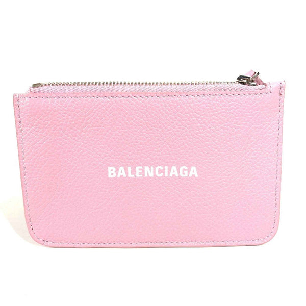 BALENCIAGA 637130 Logo Fragment Case, Card Business Holder, Pass Coin Leather, Women\'s, Pink