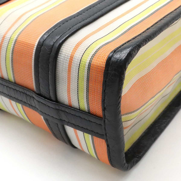 BALENCIAGA BAZAAR SHOPPER XS STRIPED MESH TOTE BAG SHOULDER NYLON MULTICOLOR BLACK 452458