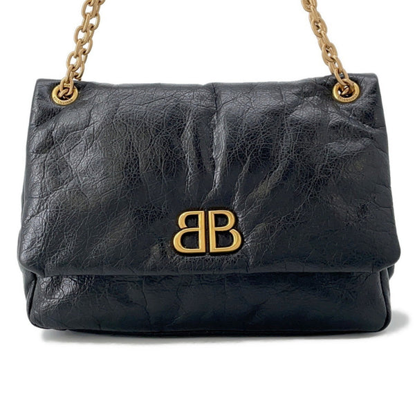 Balenciaga Monaco BB Chain Shoulder Bag in Leather (781672) - Black