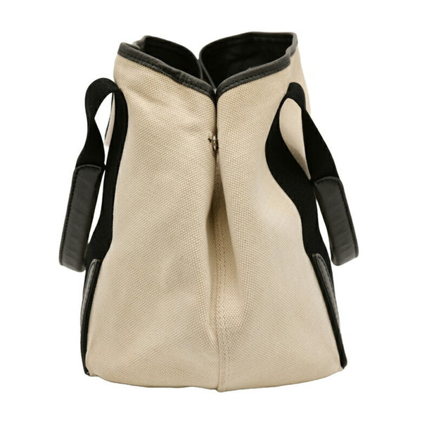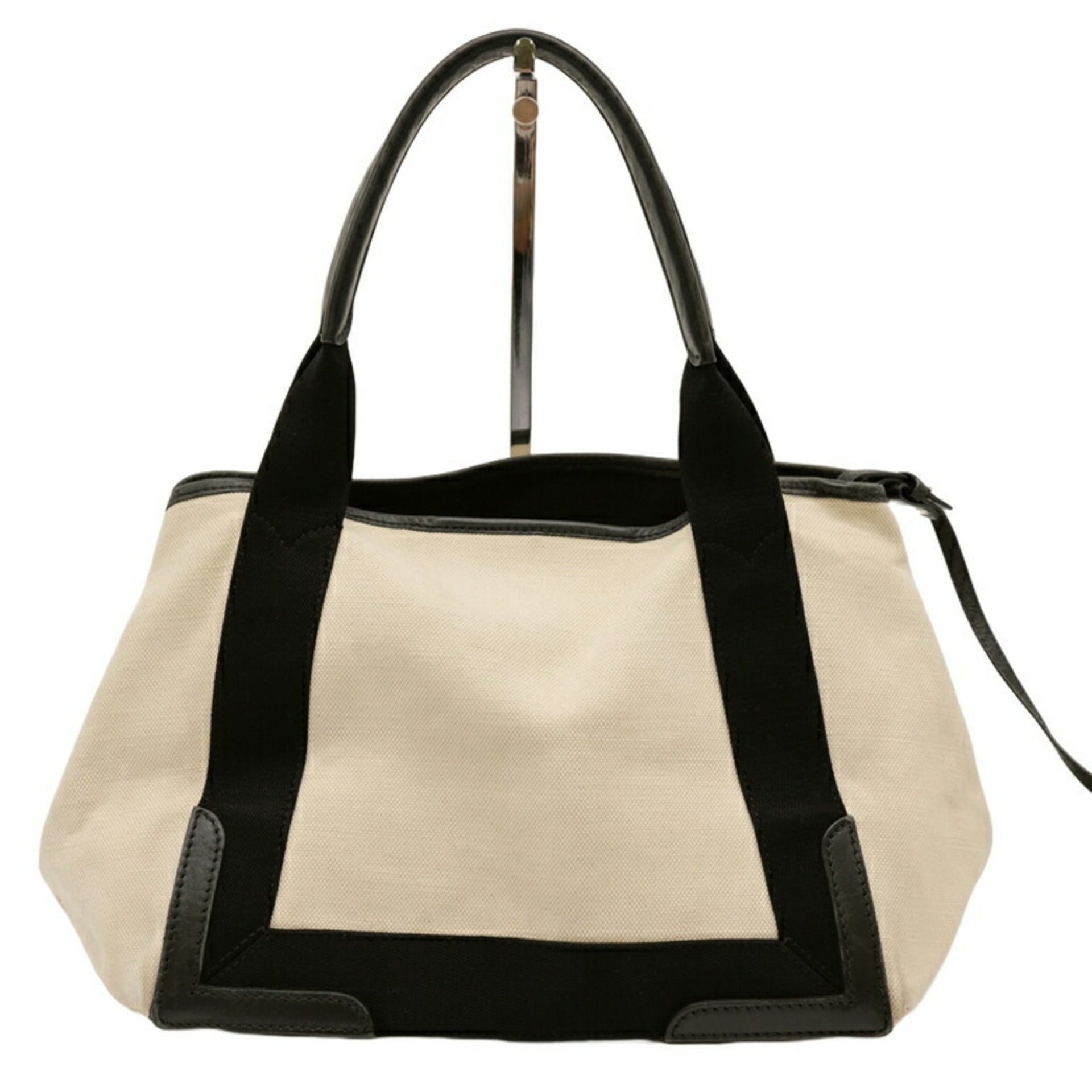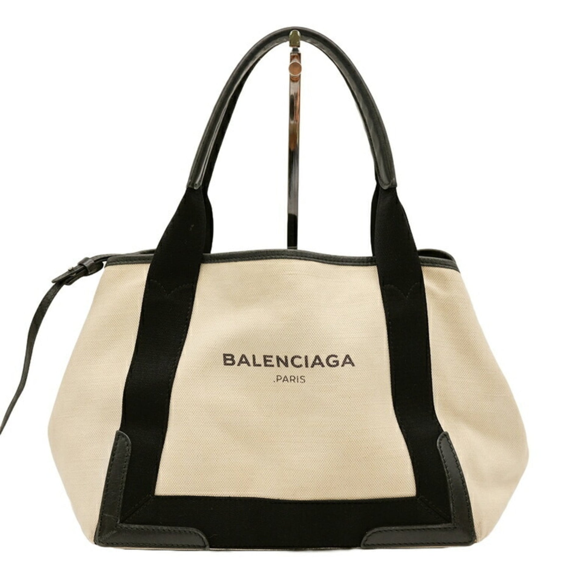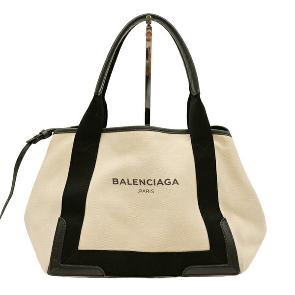 BALENCIAGA Navy Cabas S Tote Bag Leather Canvas Women\'s White Ivory 339933
