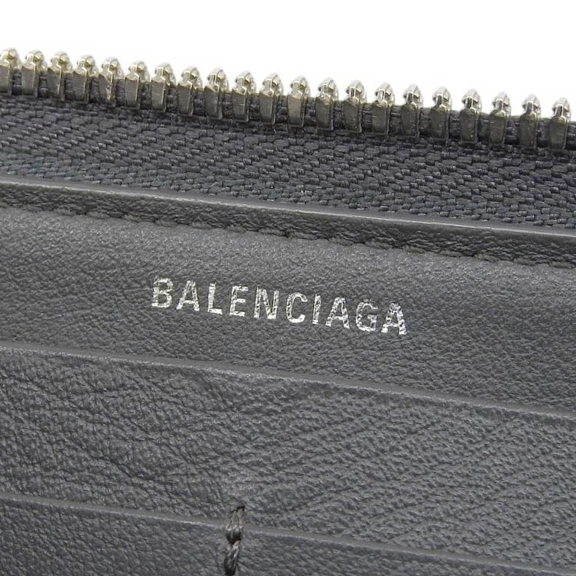 BALENCIAGA Paper Continental 504547 1110 Y 203437 Round Long Wallet Leather Grey