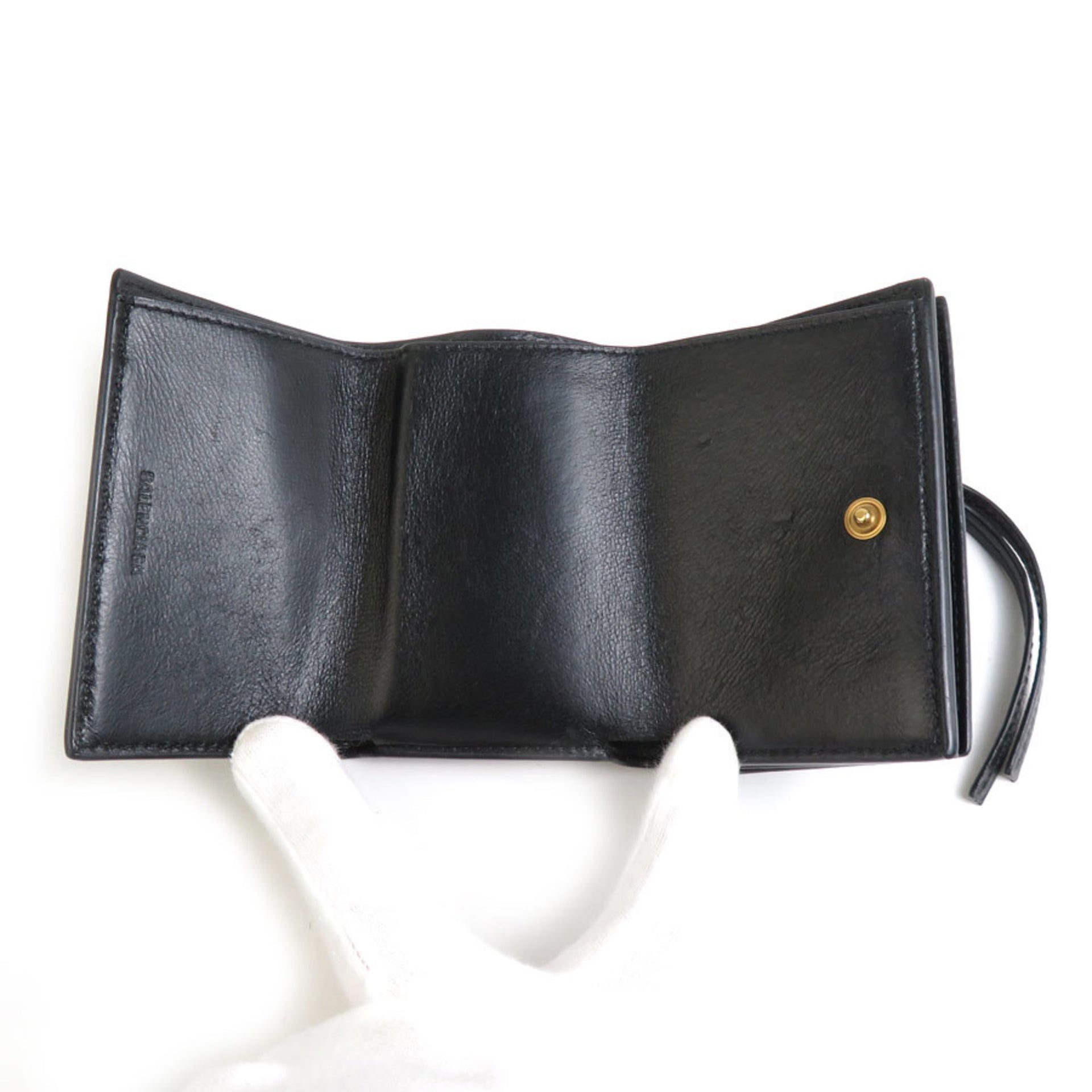 BALENCIAGA Tri-fold Wallet Leather Black Men\'s Women\'s 55818k