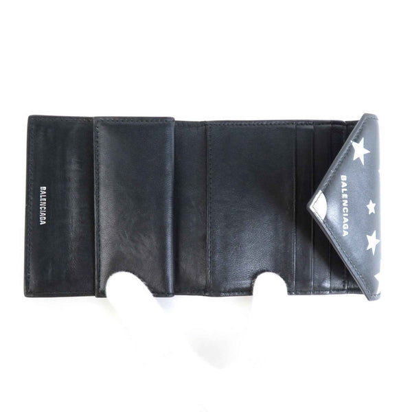 BALENCIAGA Trifold Wallet Leather Black x White Unisex