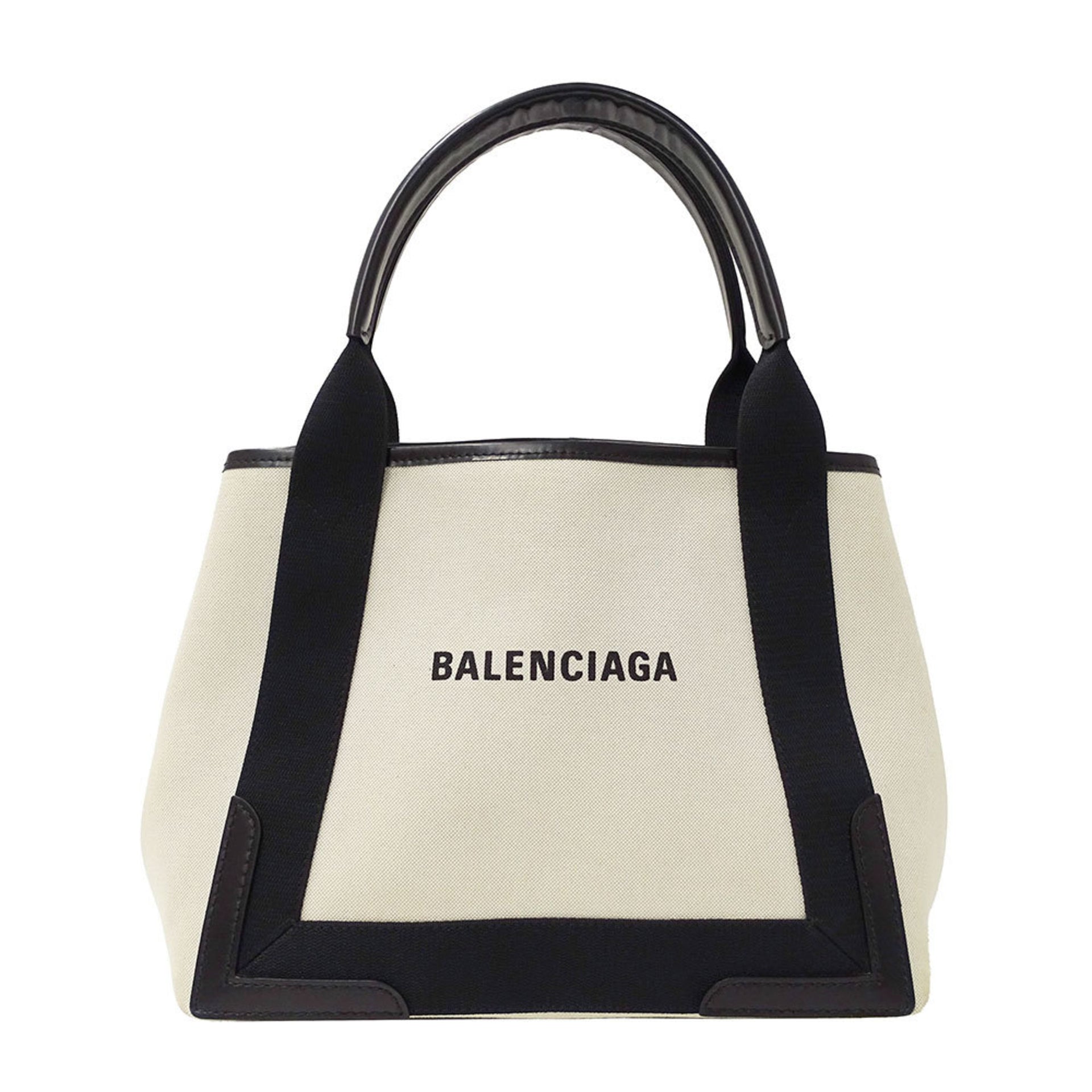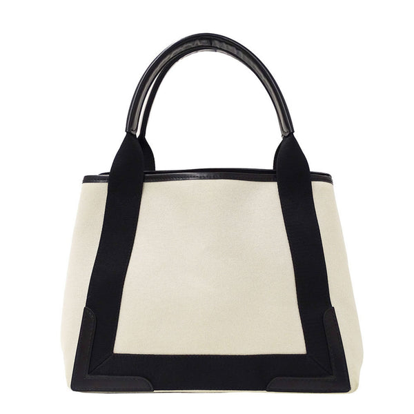 Balenciaga Women\'s Navy Cabas S Canvas Handbag (339933) in White and Black. Includes a simple pouch.