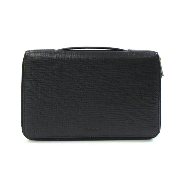 BALLY Clutch Bag Black Leather Second Handbag Travel Case Men\'s