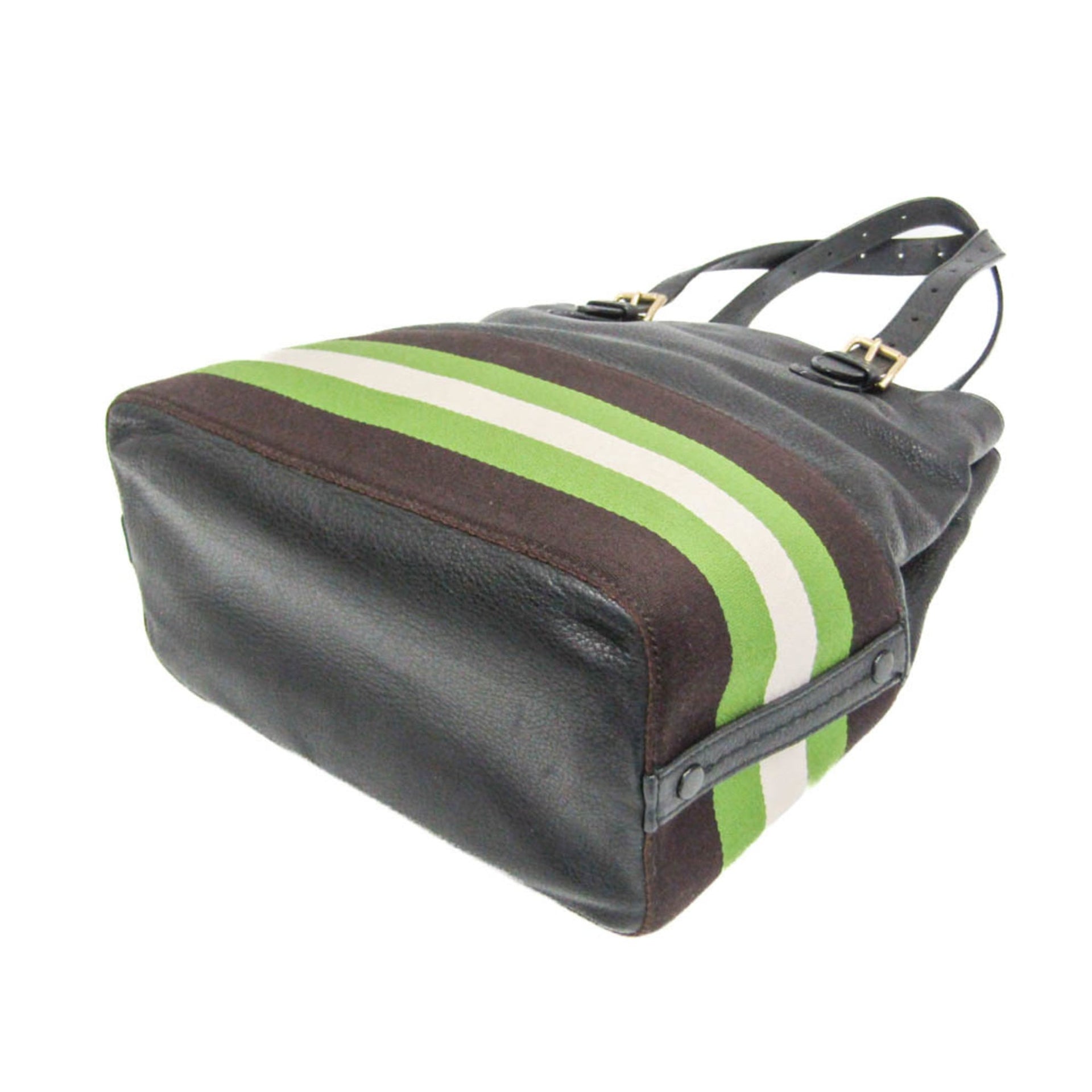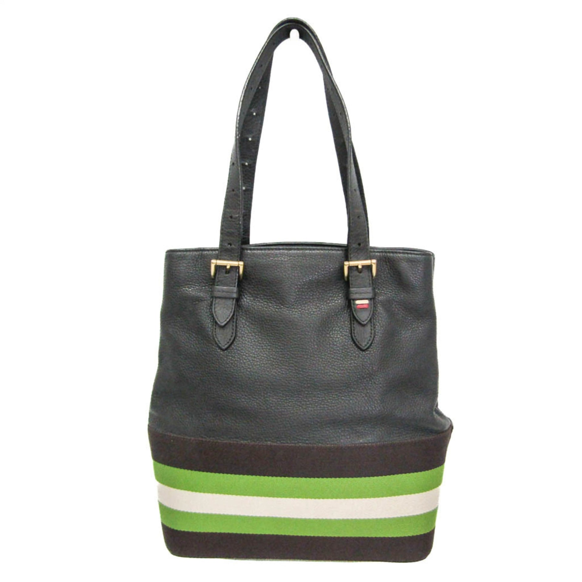 Bally Udine-sm.i Women\'s Leather,Canvas Tote Bag Black,Dark Brown,Green