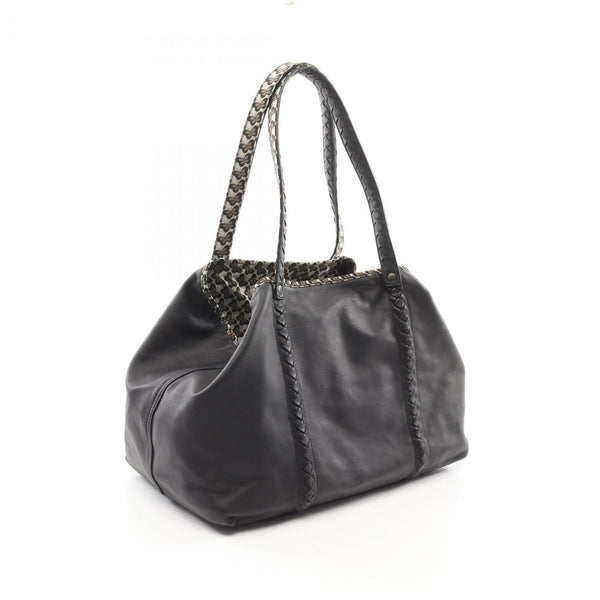 BOTTEGA VENETA Intrecciato Butterfly Reversible Tote Bag Leather Nylon Women\'s Black Gray 547381