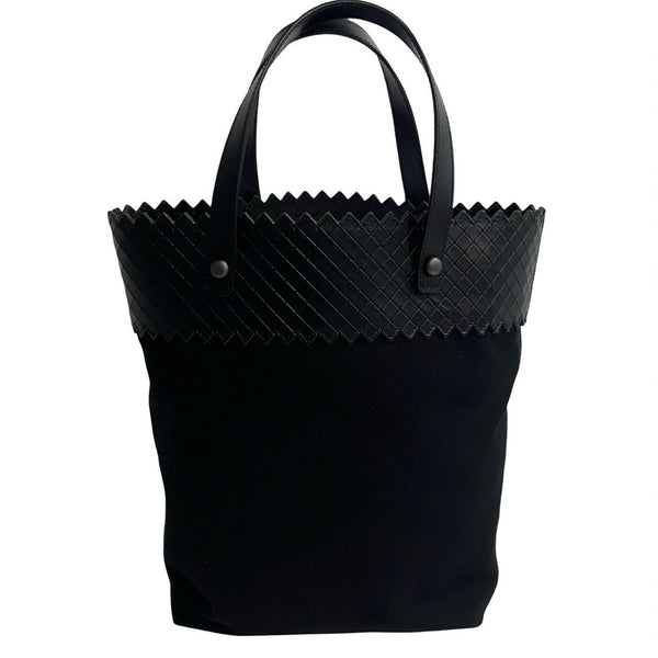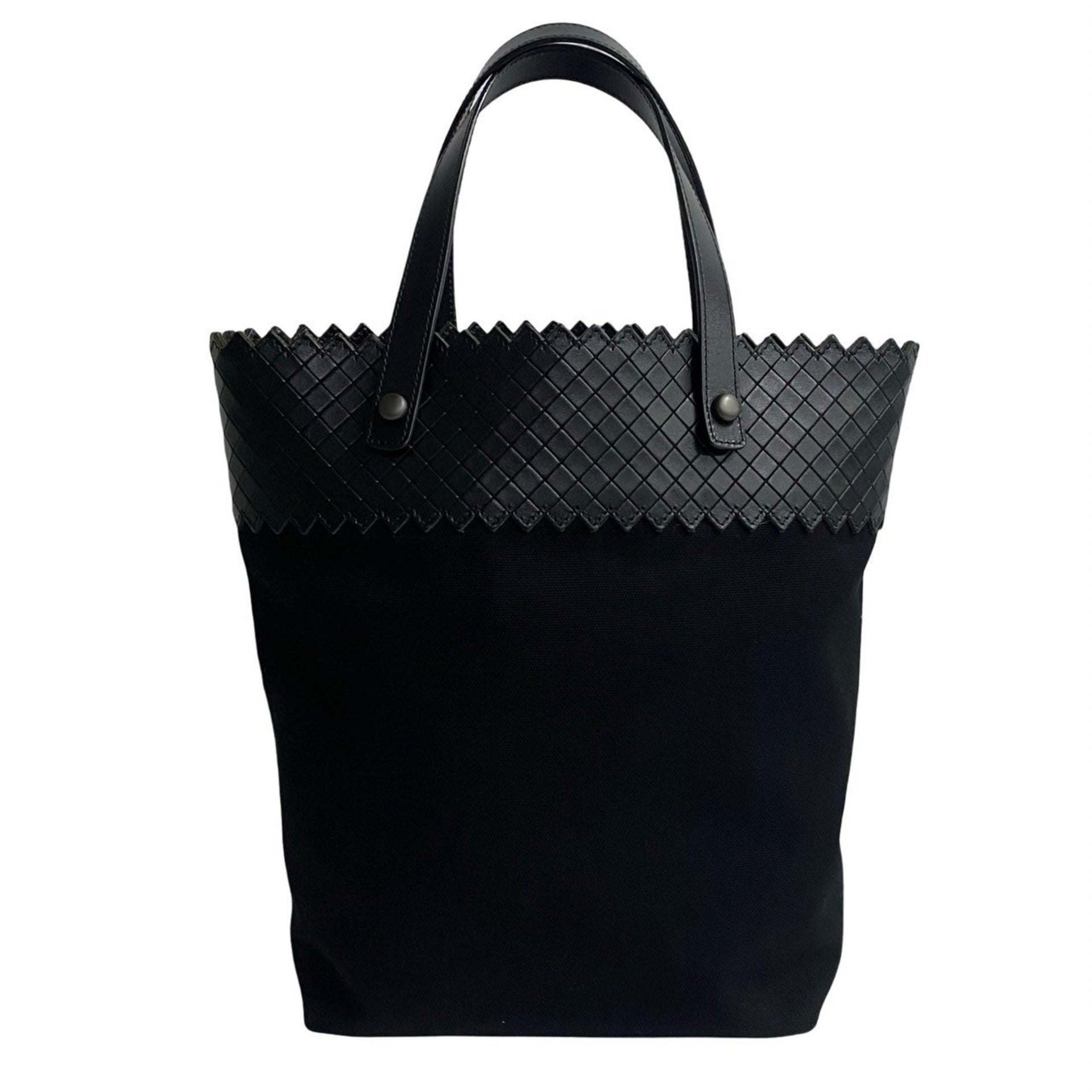 BOTTEGA VENETA Intrecciato Leather Canvas Tote Bag, Black, 922-2