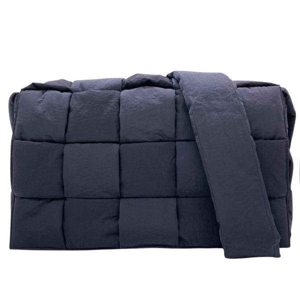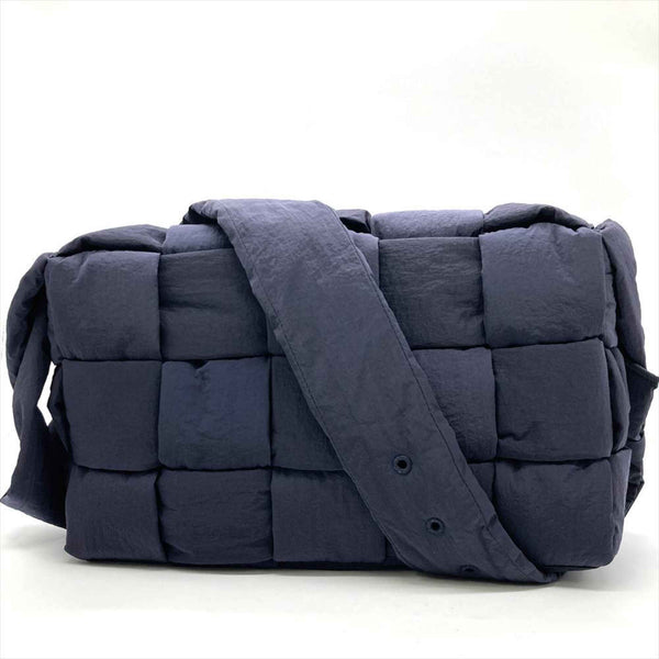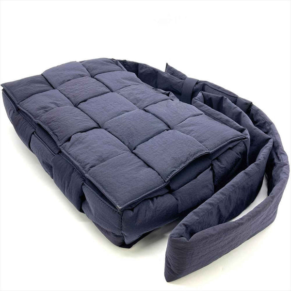 Bottega Veneta Padded Tech Cassette Maxi Intrecciato Shoulder Bag in Navy Nylon with Silver Hardware for Men and Women