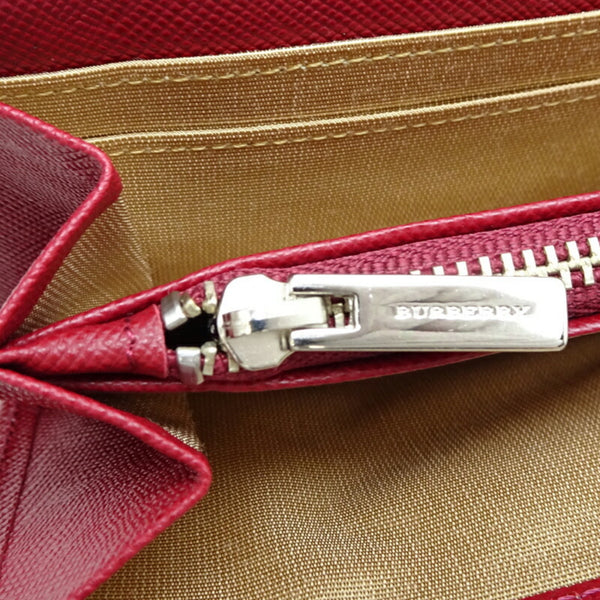 Burberry compact wallet, folding long women\'s tri-fold leather, red