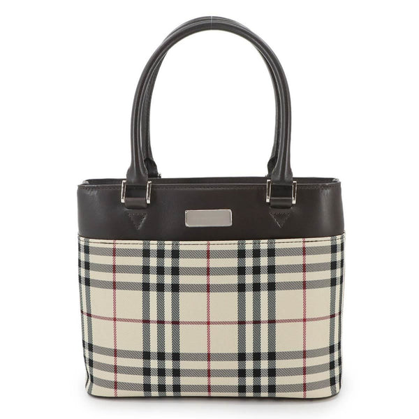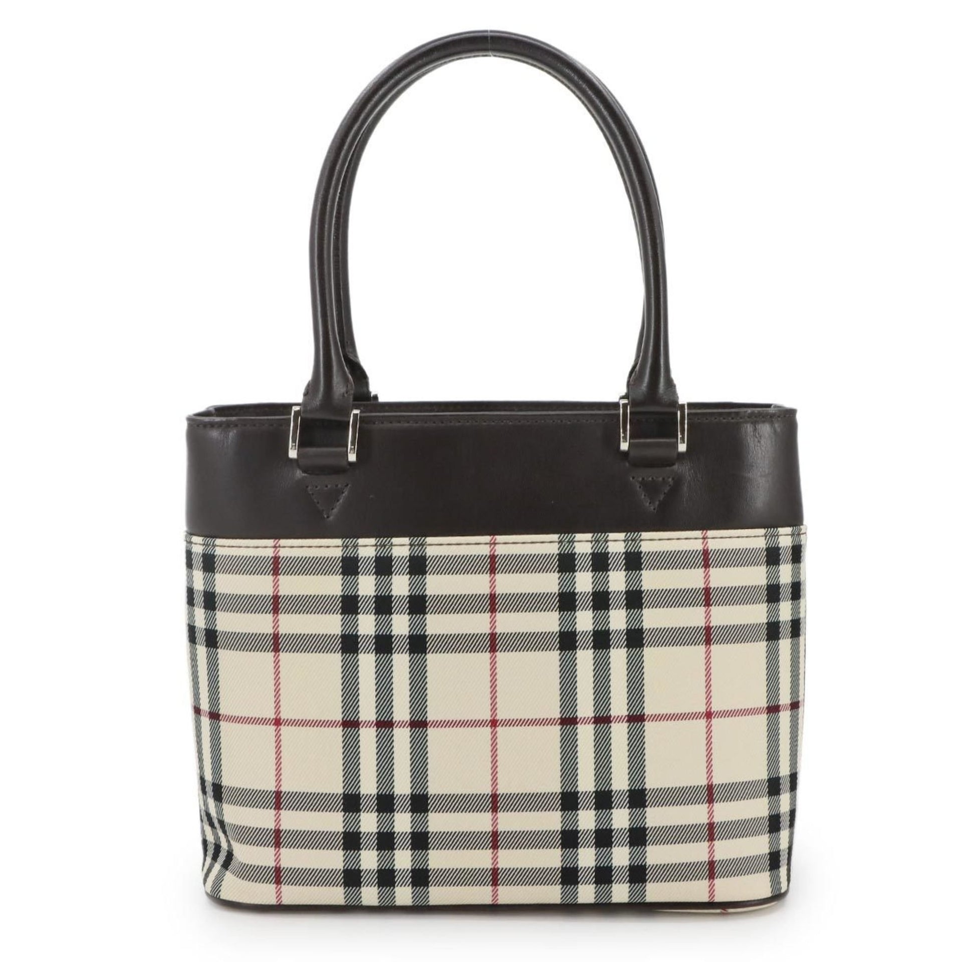 Burberry Nova Check Handbag Canvas Leather Beige Brown Hand Bag