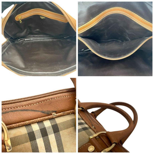 Burberry Nova Check Horse Logo Tote Bag, Handbag, Briefcase, Canvas and Leather, Brown, Gold Hardware, Men\'s Women\'s