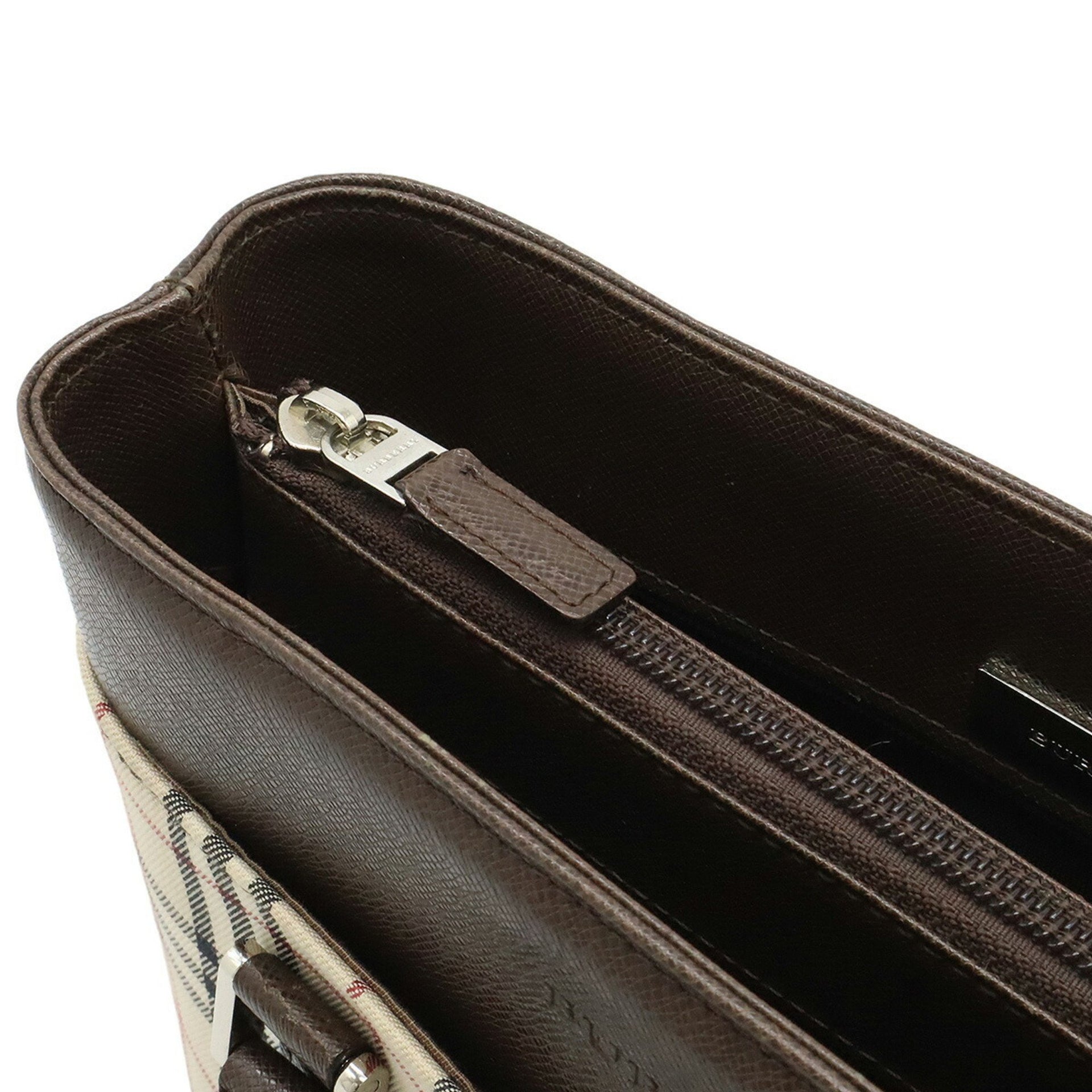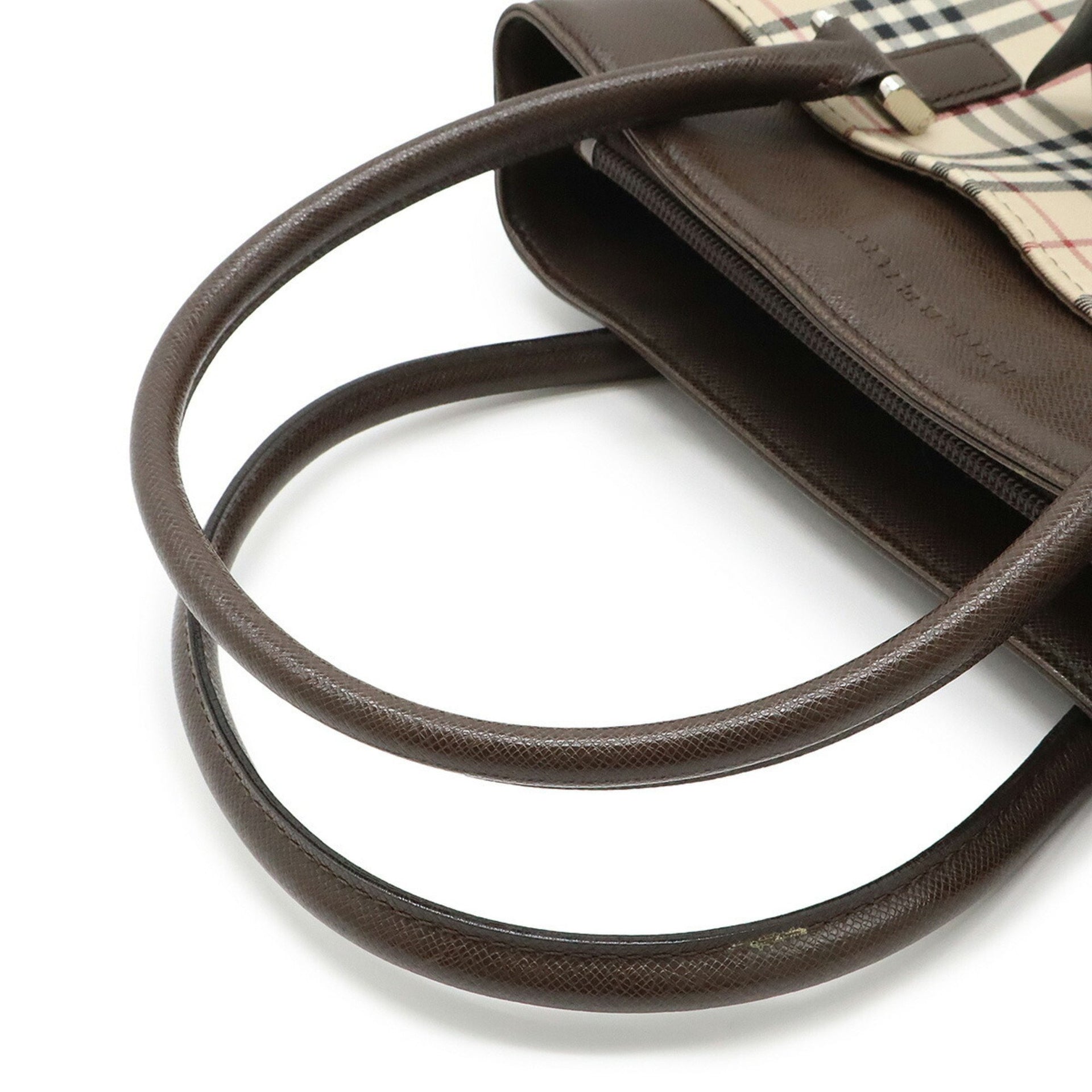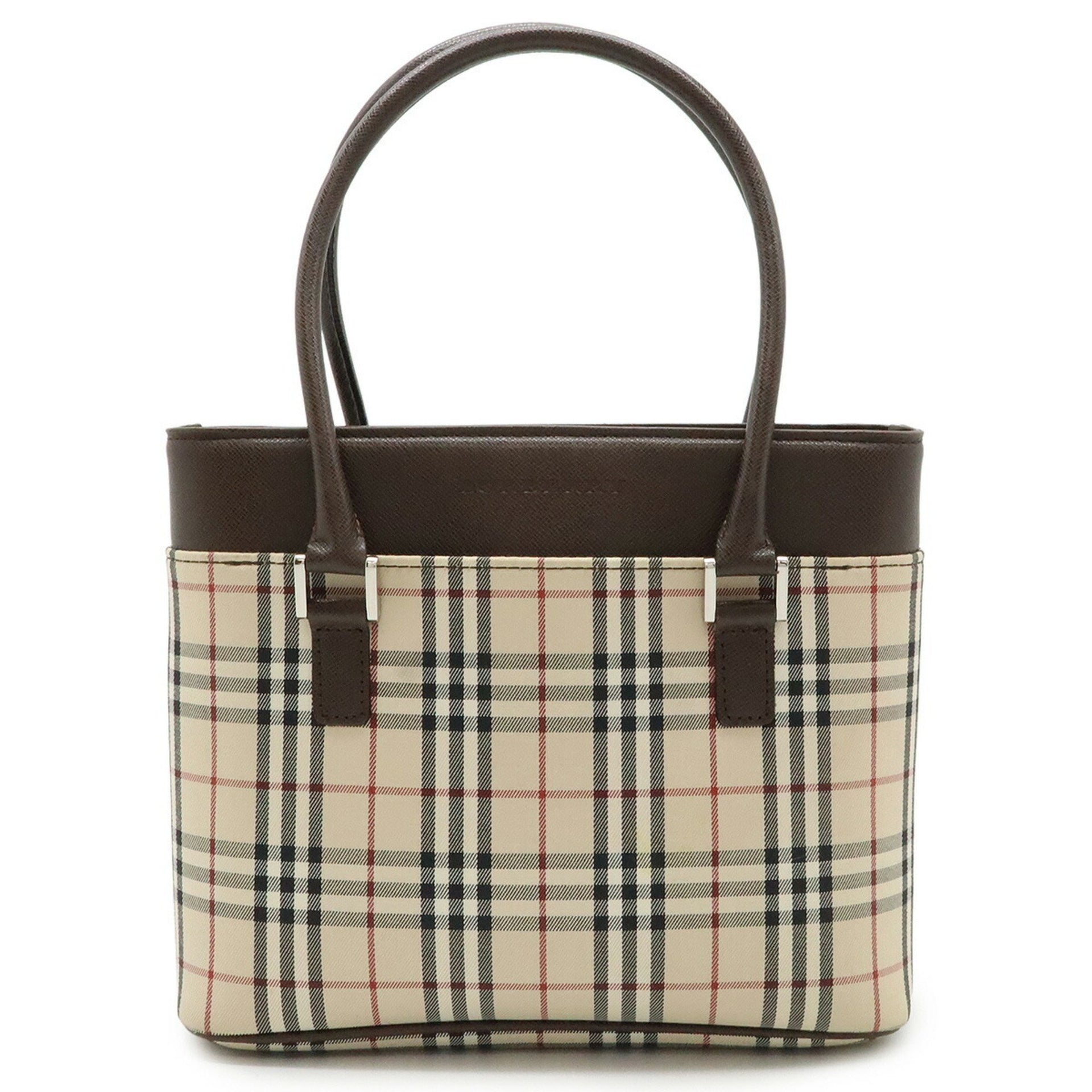 BURBERRY Nova Check Pattern Handbag Tote Bag Canvas Leather Beige Dark Brown Black Bordeaux
