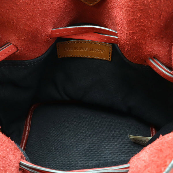 BURBERRY Nova Check Pattern Shoulder Bag Suede Canvas Leather Red Brown