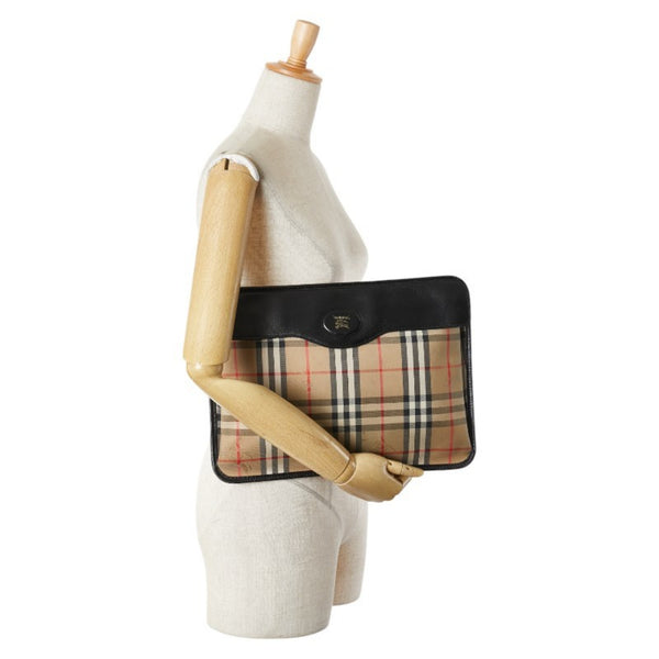 Burberry Nova Check Shadow Horse Clutch Bag/Second Bag in Beige, Black, and Red Canvas Leather. Women\'s. BURBERRY
