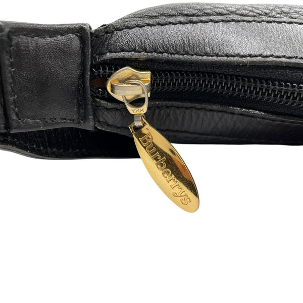 BURBERRY Shoulder bag, round tote, black, leather, gold hardware, Nova check, crossbody, women's, S97
