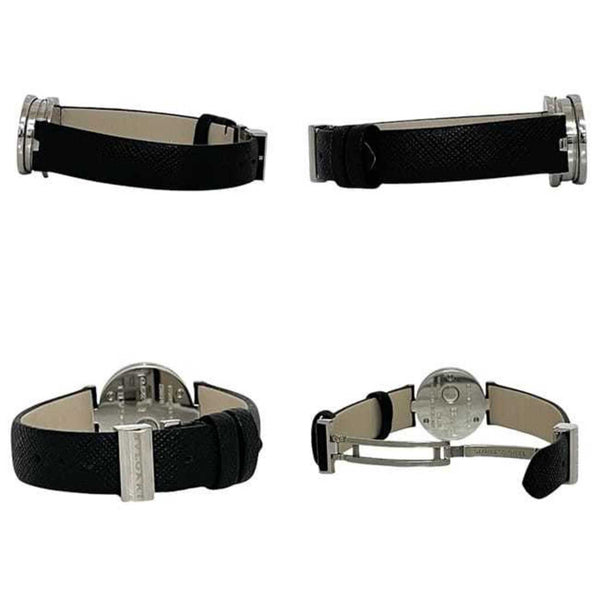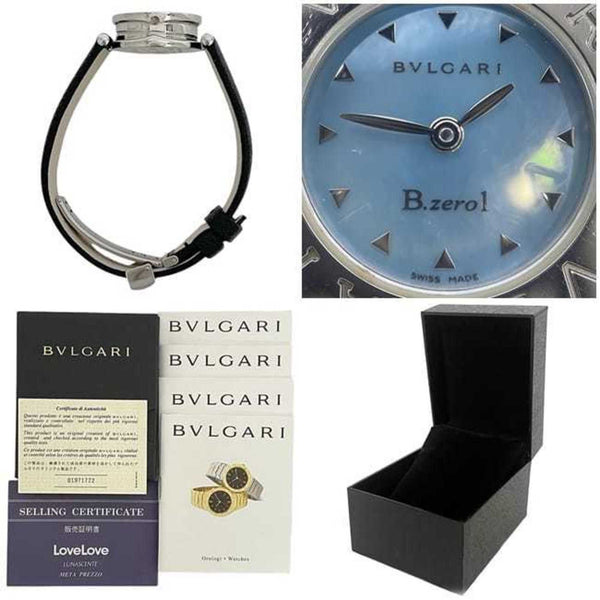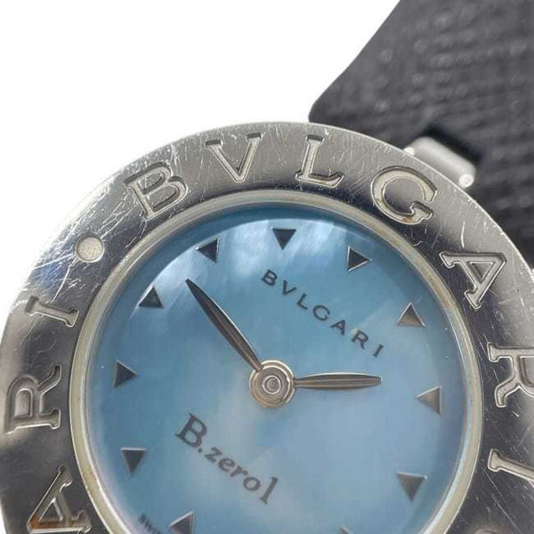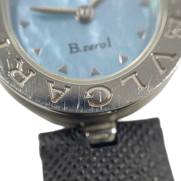 BVLGARI B-zero1 watch f-24061, blue shell, silver, black, BZ 22 S SS, leather, quartz movement, D519**, women\'s, battery-operated, shell dial, genuine bracelet included