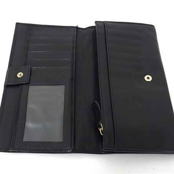 BVLGARI Colore 33625 Black Leather Bifold Long Wallet for Men and Women