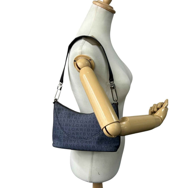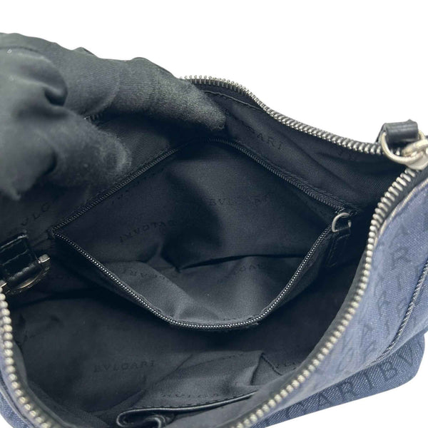 BVLGARI Logomania Handbag Shoulder Bag Accessory Pouch One-Shoulder Canvas Leather Navy Black Women\'s Size s38