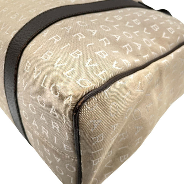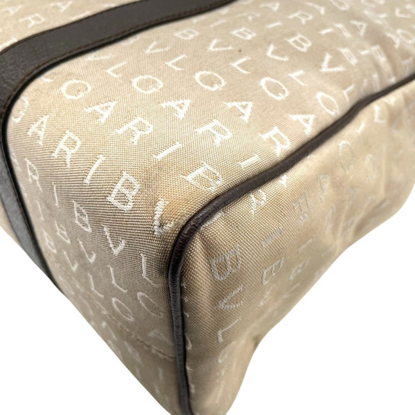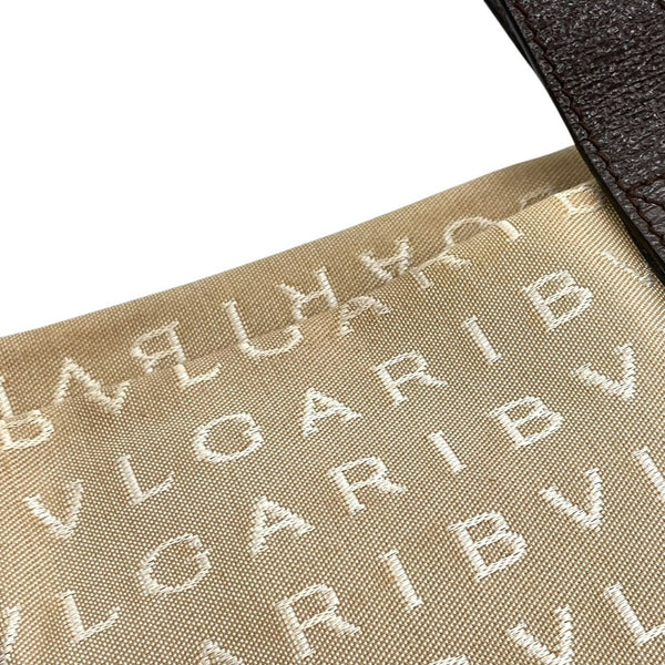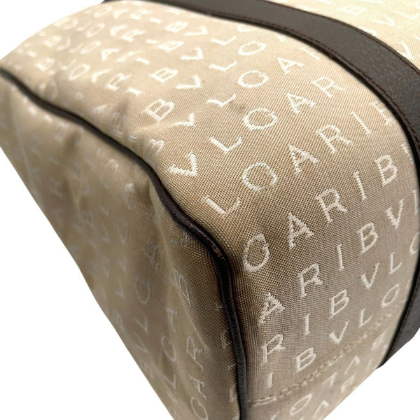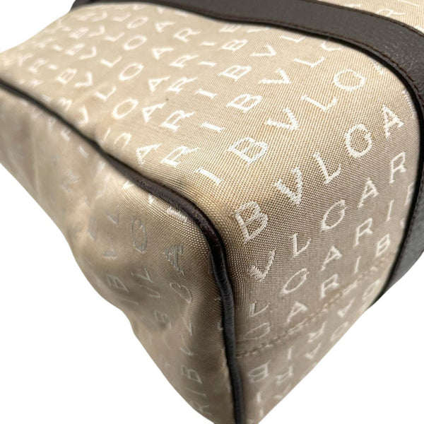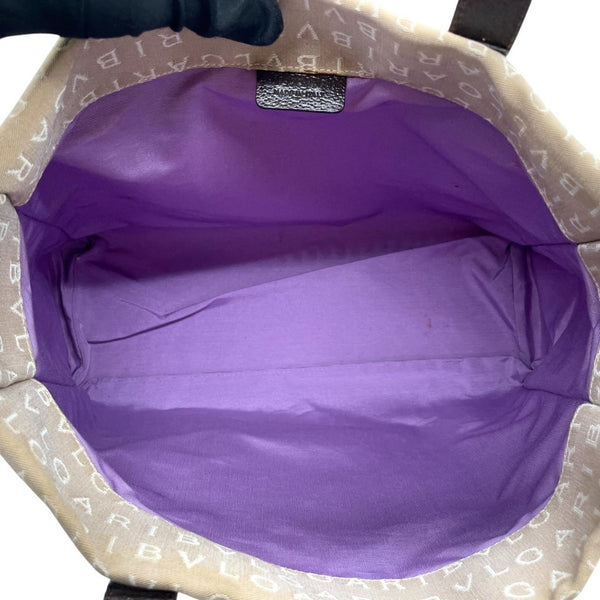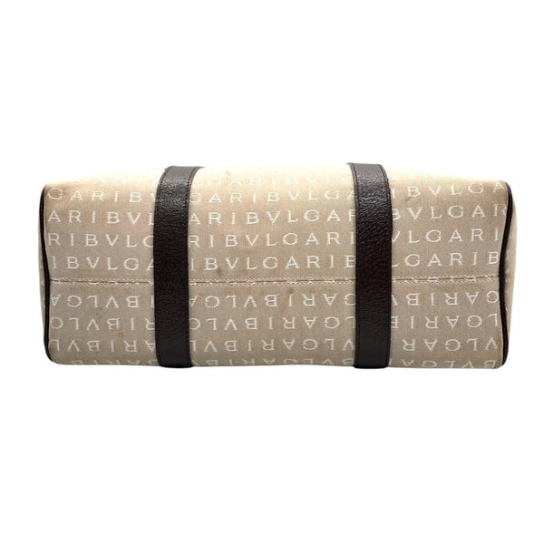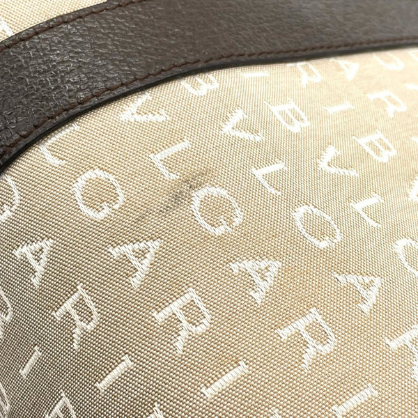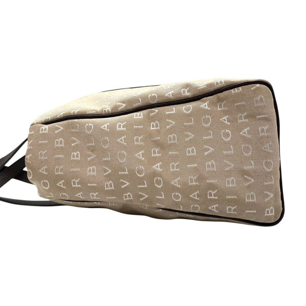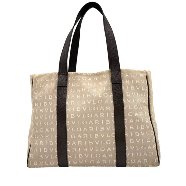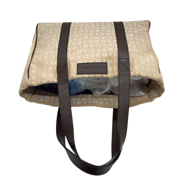 BVLGARI Logomania Tote Bag, Canvas Leather, Beige and Brown, Women\'s, One-Shoulder A5