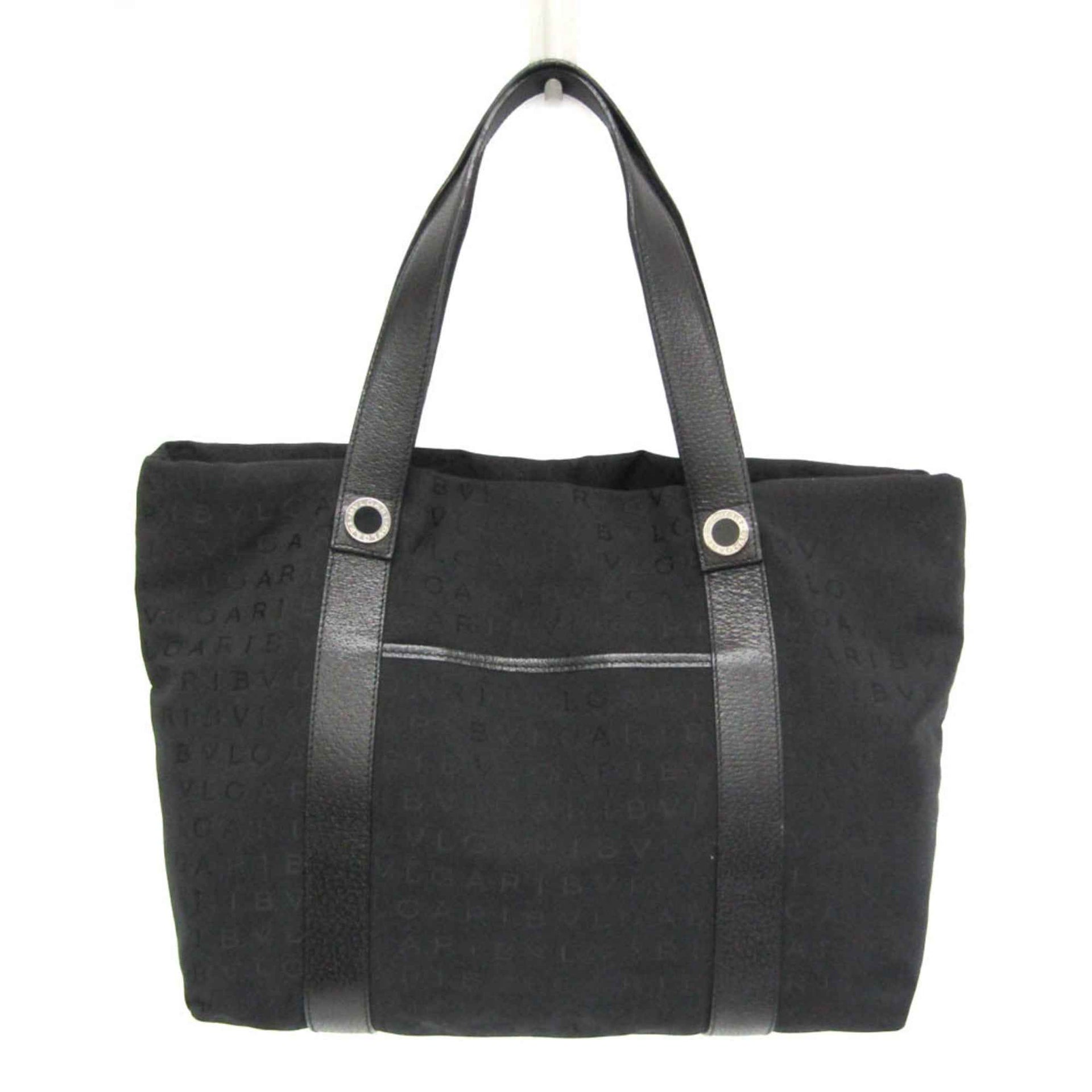 Bvlgari Logomania Women\'s Canvas,Leather Tote Bag Black