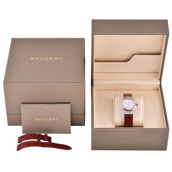 BVLGARI LU28S Lucea Watch Quartz Pink Shell Dial 12P Diamond Index SS Ladies