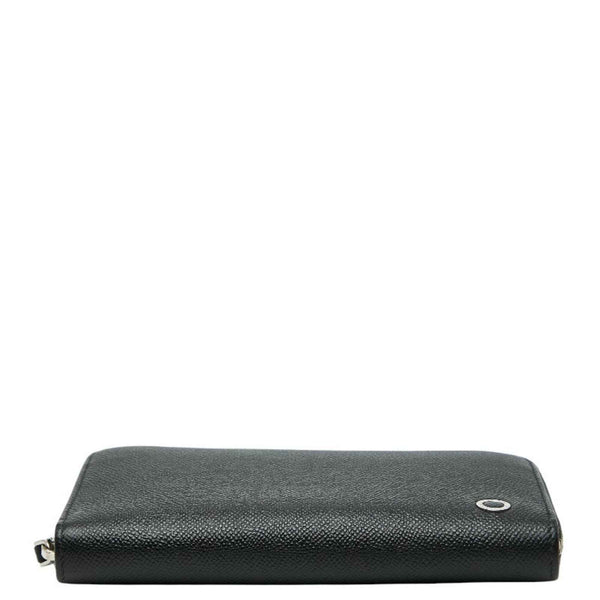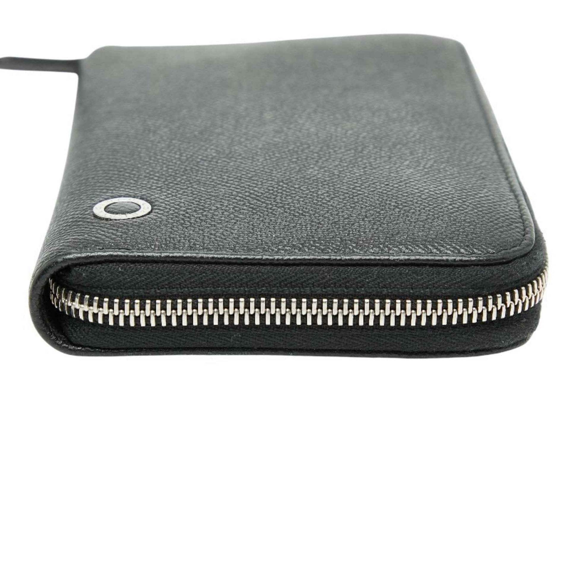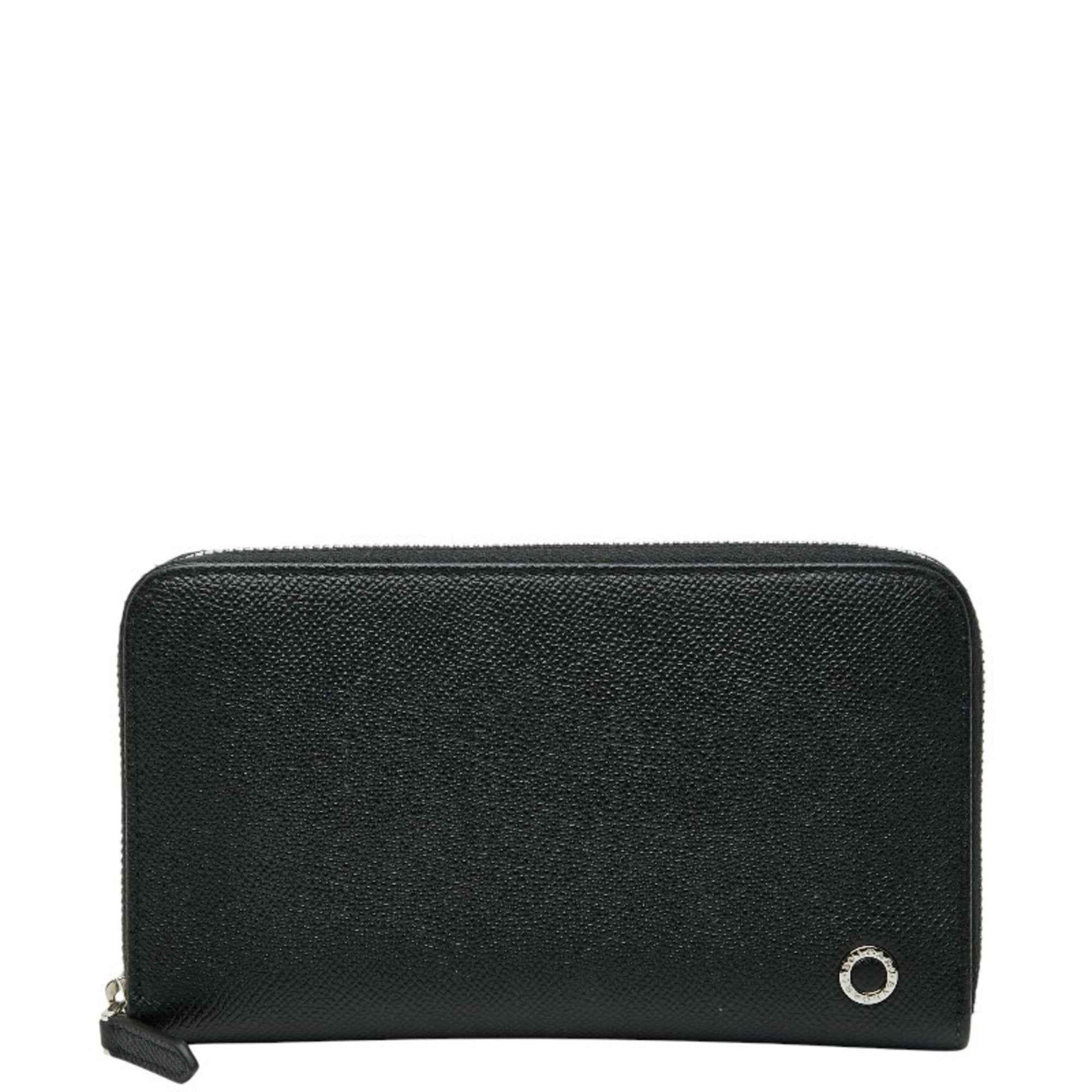 BVLGARI Man Round Zip Long Wallet Black Leather Women\'s