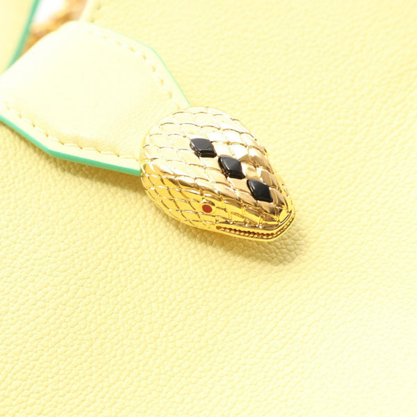 BVLGARI Serpenti Ellipse Handbag, Leather, Women\'s, Yellow and Green
