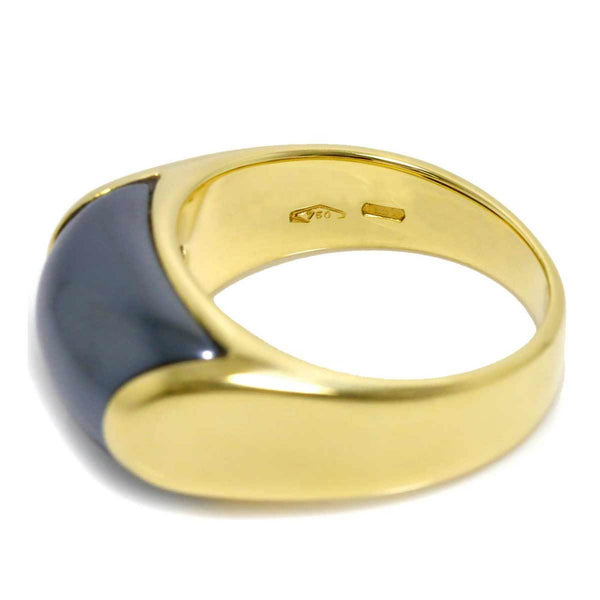 BVLGARI Tronchetto Ring, size 12, 18K Yellow Gold 750, Hematite Ring