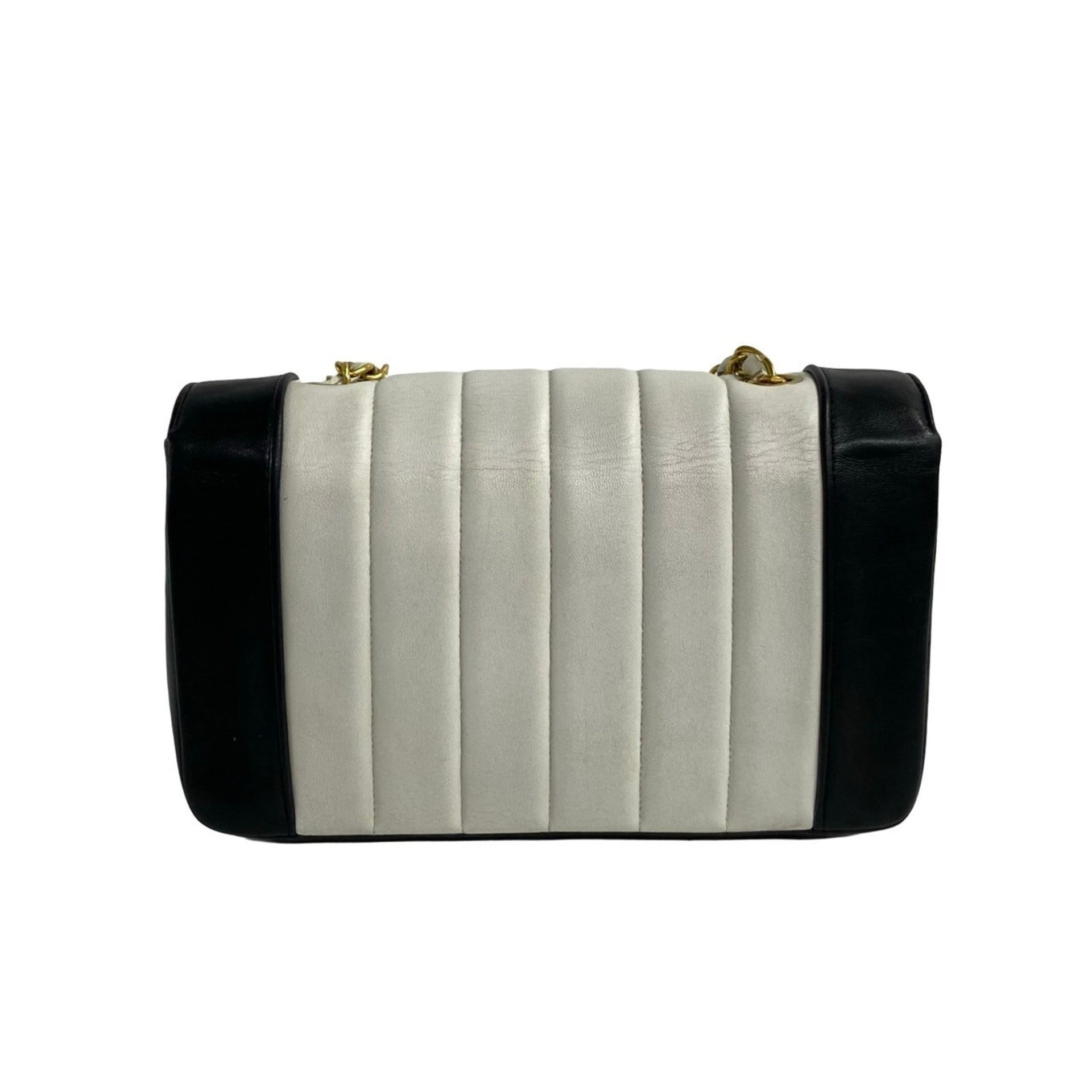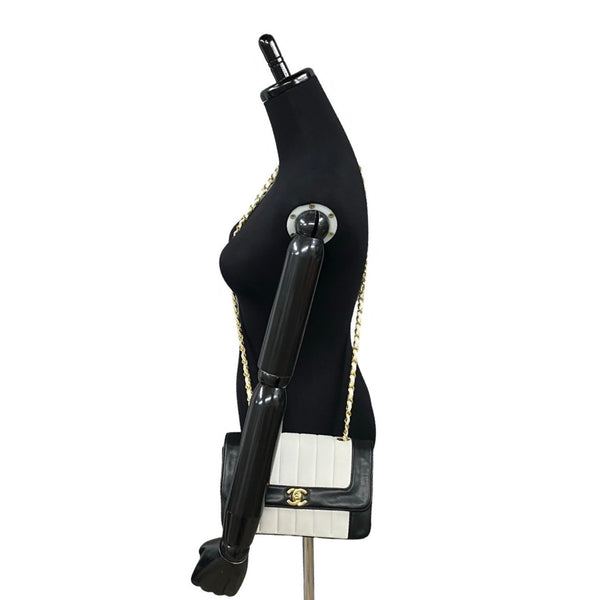 Card No. 2 CHANEL Coco Mark Lambskin Chain Shoulder Bag in White and Black 23859