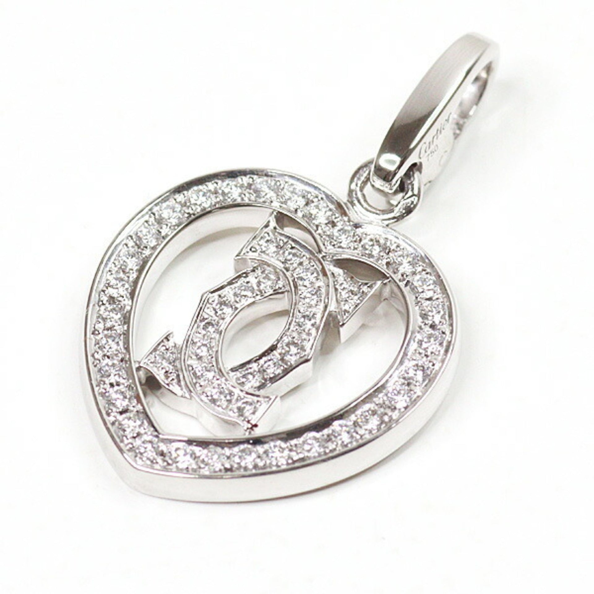 Cartier 2C Heart Diamond Pendant Top 750WG 18KWG Charm Finished