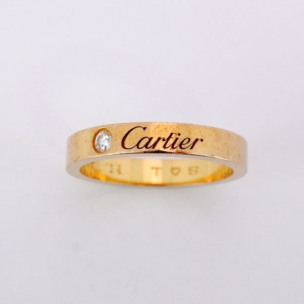 Cartier C Deux Engraved Ring, 1PD, 18KPG Pink Gold with Diamonds, #49, Women\'s