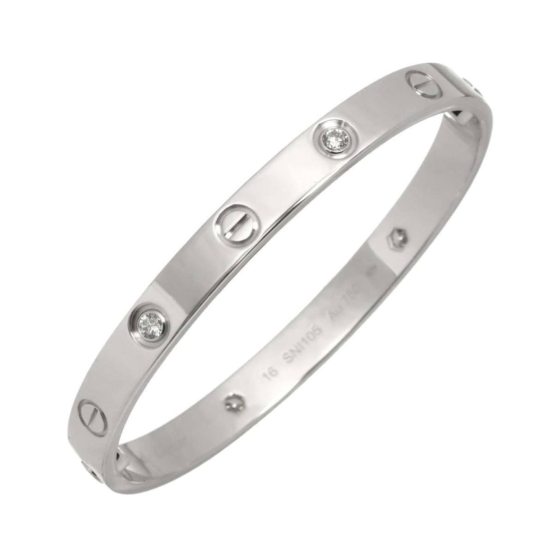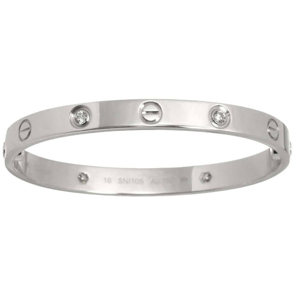 Cartier Love Bracelet, 4 Half Diamonds, #16, 18K White Gold 750, Bracelet Bangle