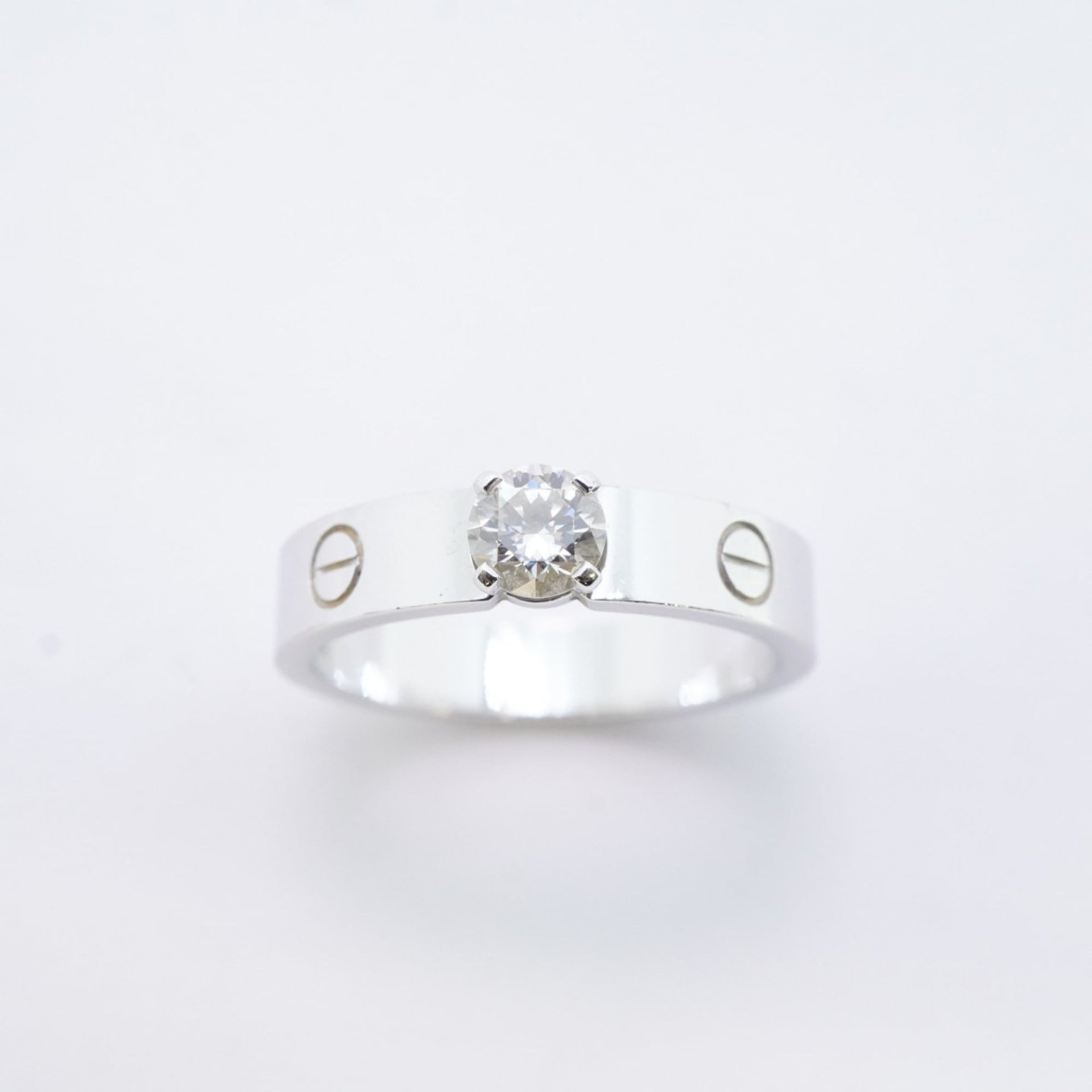 Cartier Mini Love Solitaire Ring, 1PD, 18K White Gold with 0.30ct Diamond, #52, Women\'s