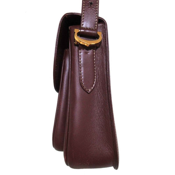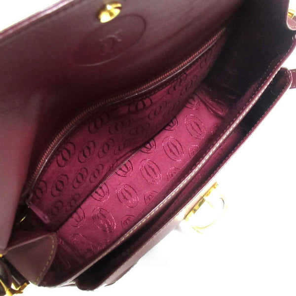 Cartier Must Line Leather Crossbody Flap Shoulder Bag in Bordeaux with Gold Hardware for Women