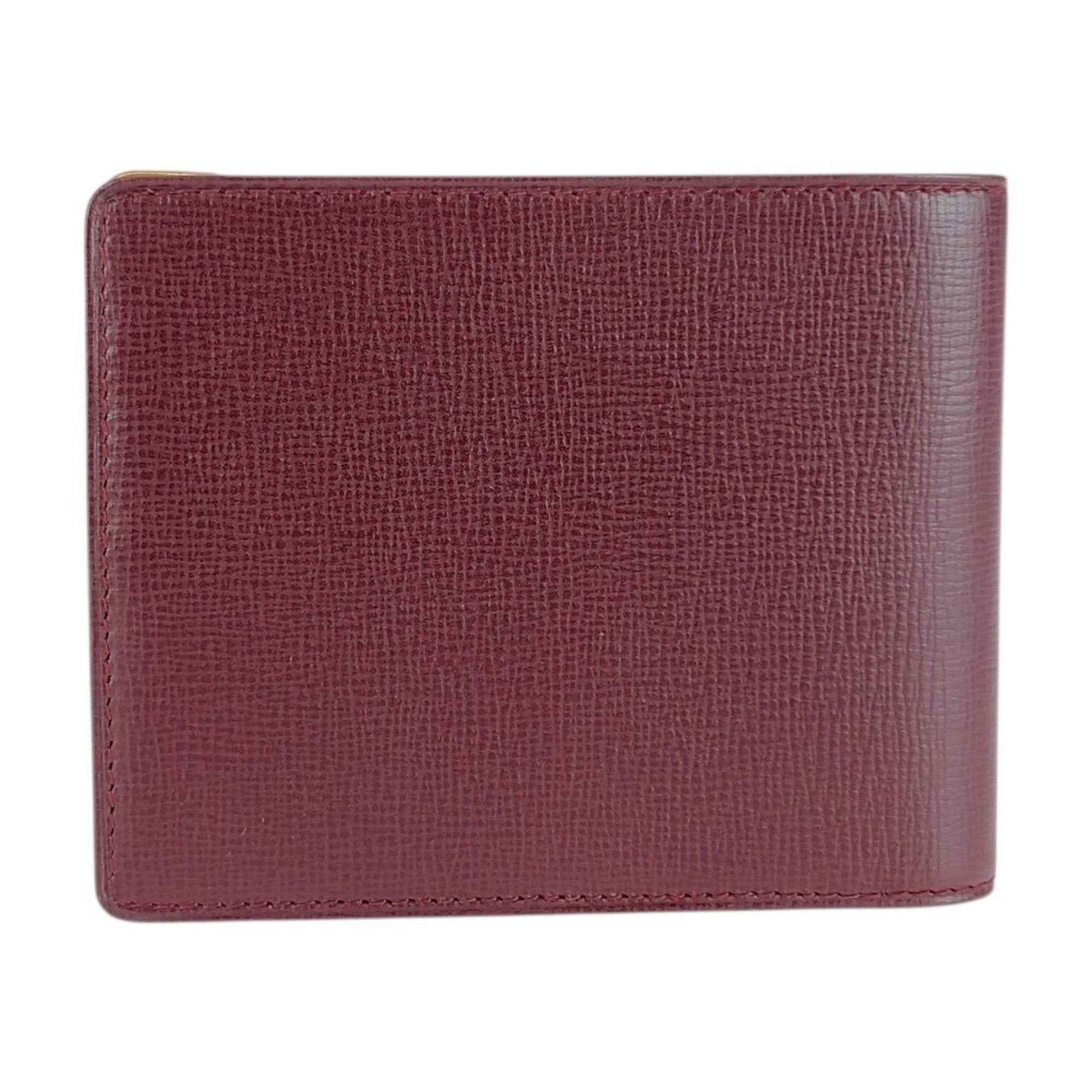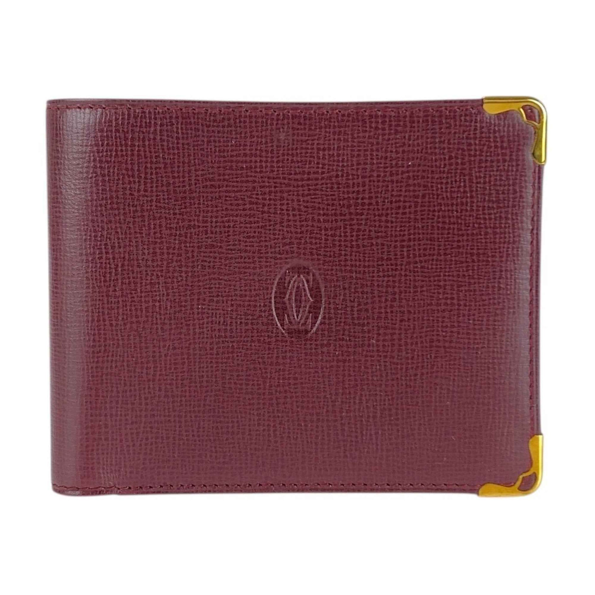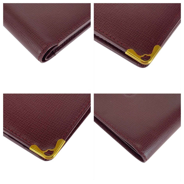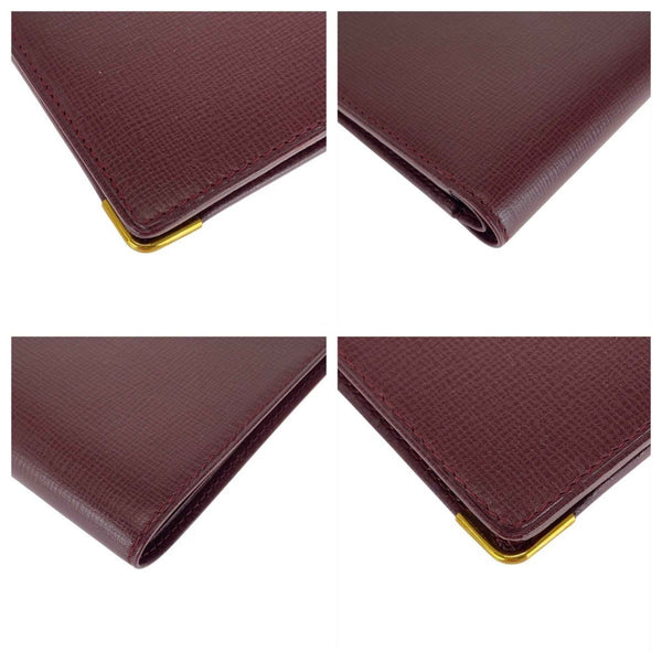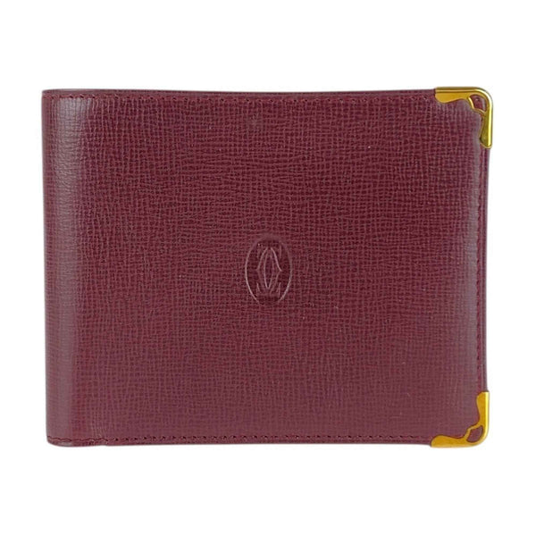 CARTIER Must Line Wine Red Bordeaux Gold Hardware Leather Billfold Compact Wallet for Women