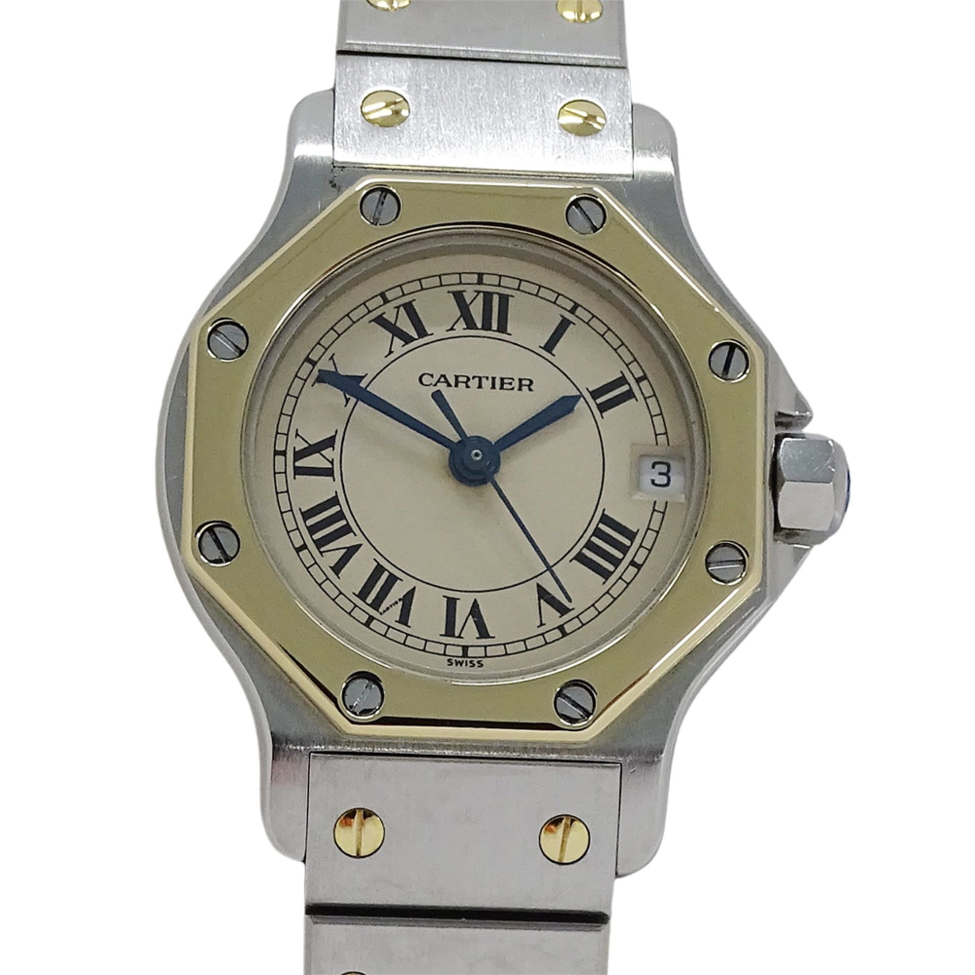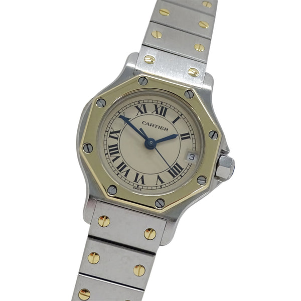 Cartier women\'s watch, Santos Octagon SM, date, quartz movement, stainless steel (SS) and gold (YG), W2001683, combination, polished.