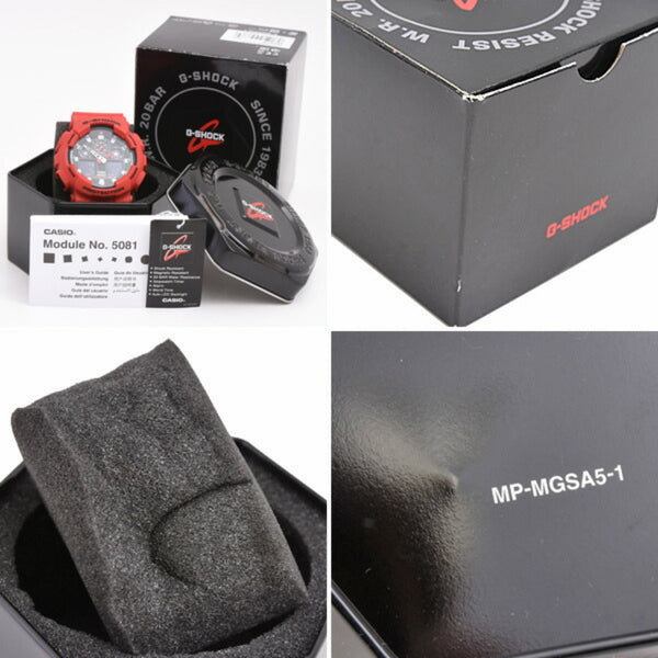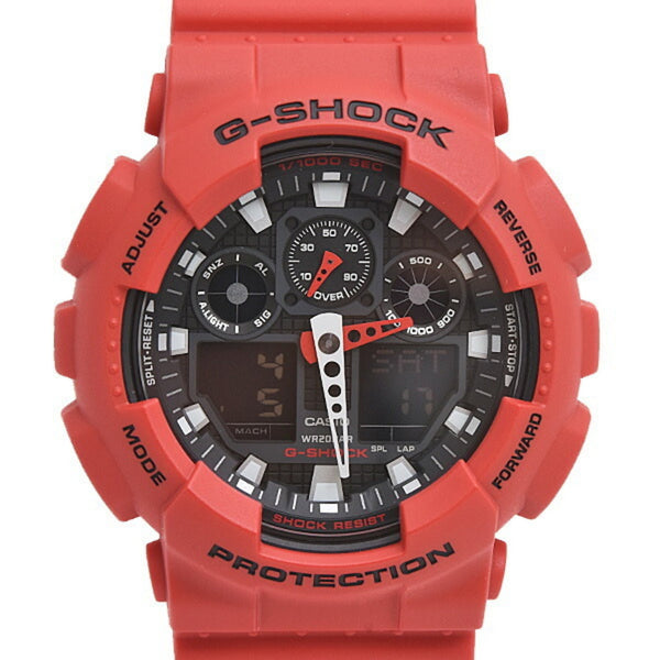 Casio Men's G-SHOCK Battery-powered Digital-Analog Dial Red Stainless Steel Rubber Carbon Resin G-Shock Watch CASIO GA-100B-4AER