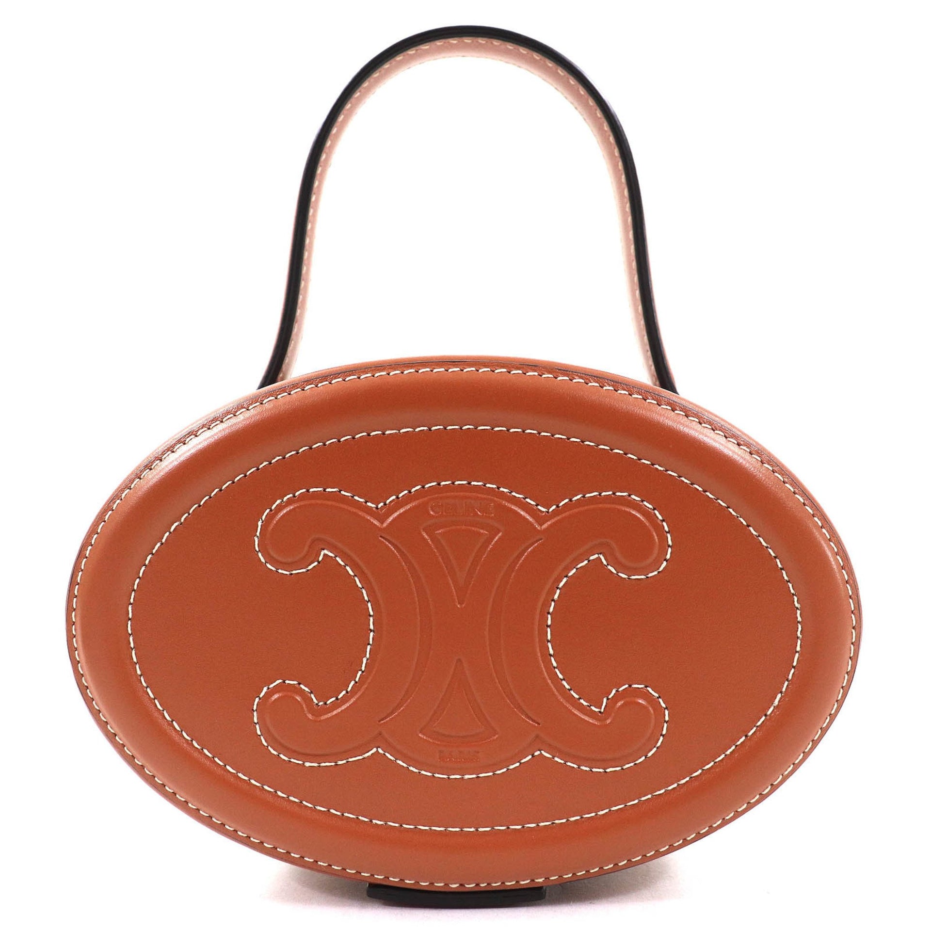 CELINE 198613 Oval Minaudière Cuir Triomphe Smooth Calfskin Leather Handbag in Tan and Brown, Includes Dust Bag, Made Italy