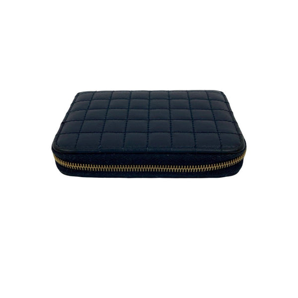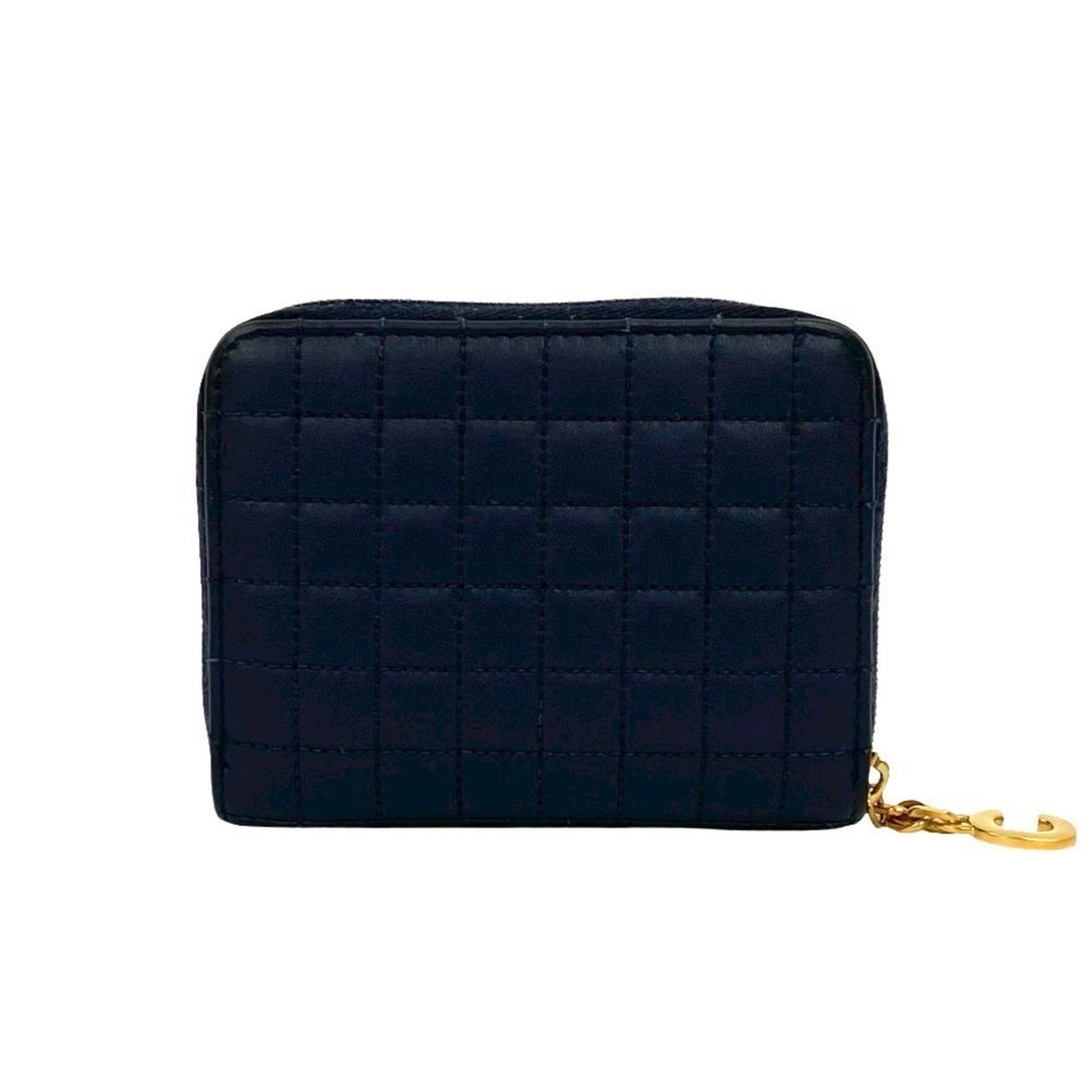 CELINE C Charm Compact Wallet, Quilted Leather, Genuine Round Zip, Bifold Navy, 37267
