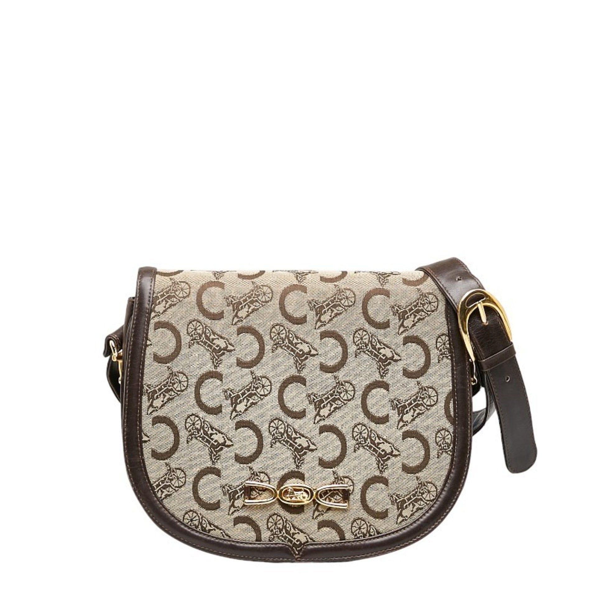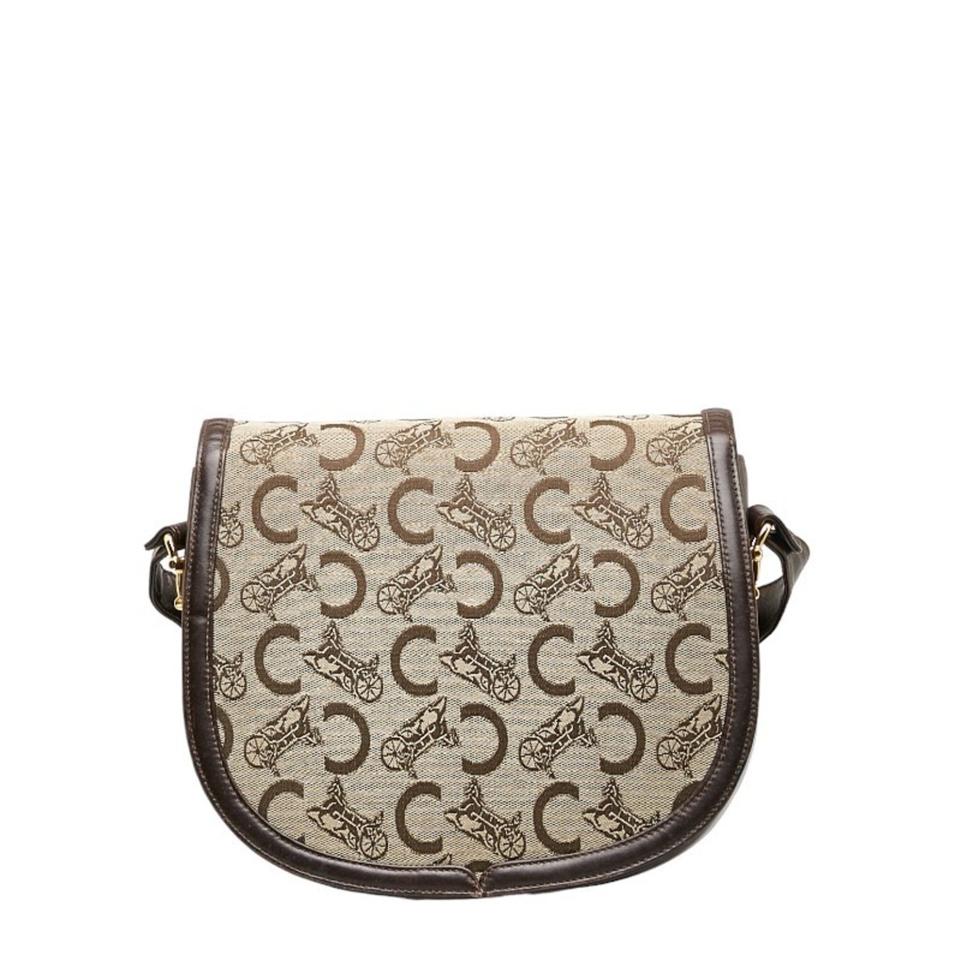 Celine C Macadam Shoulder Bag Beige Brown Canvas Leather Women\'s CELINE