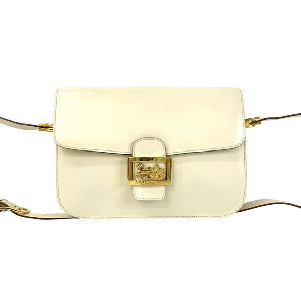 CELINE Carriage Leather Shoulder/Crossbody Bag, Off-White/Ivory, 20958