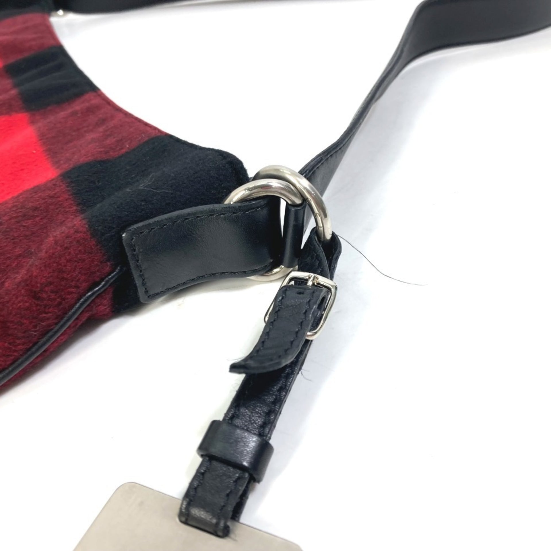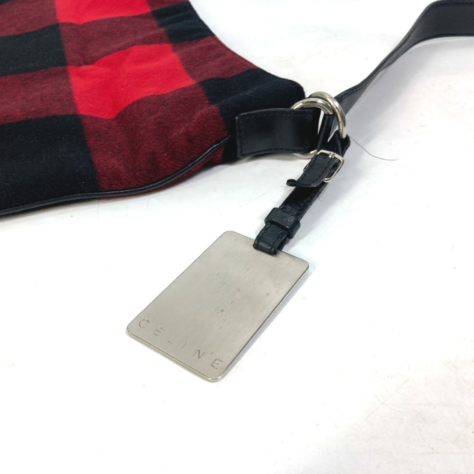 CELINE Check Shoulder Bag in Cotton and Leather, Red