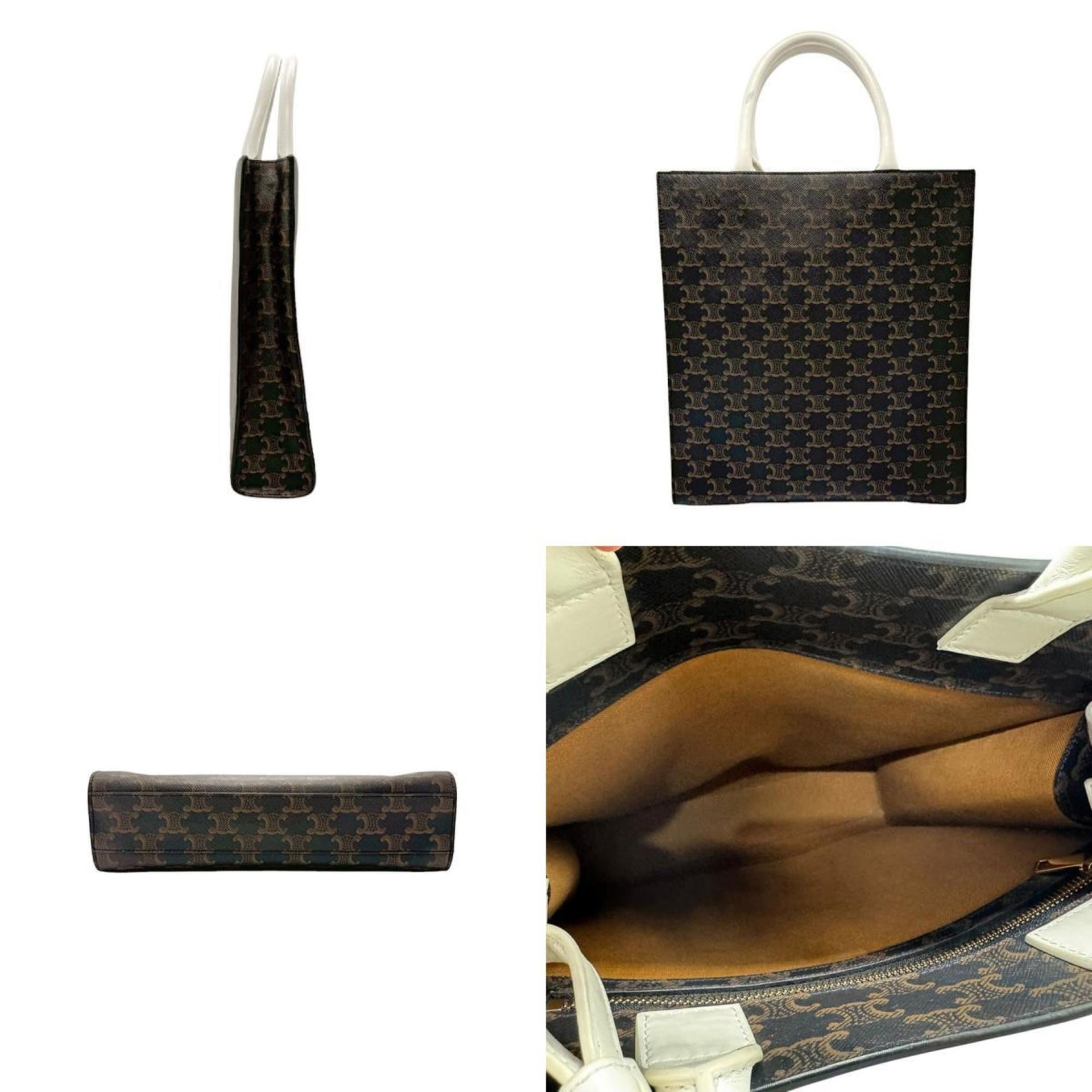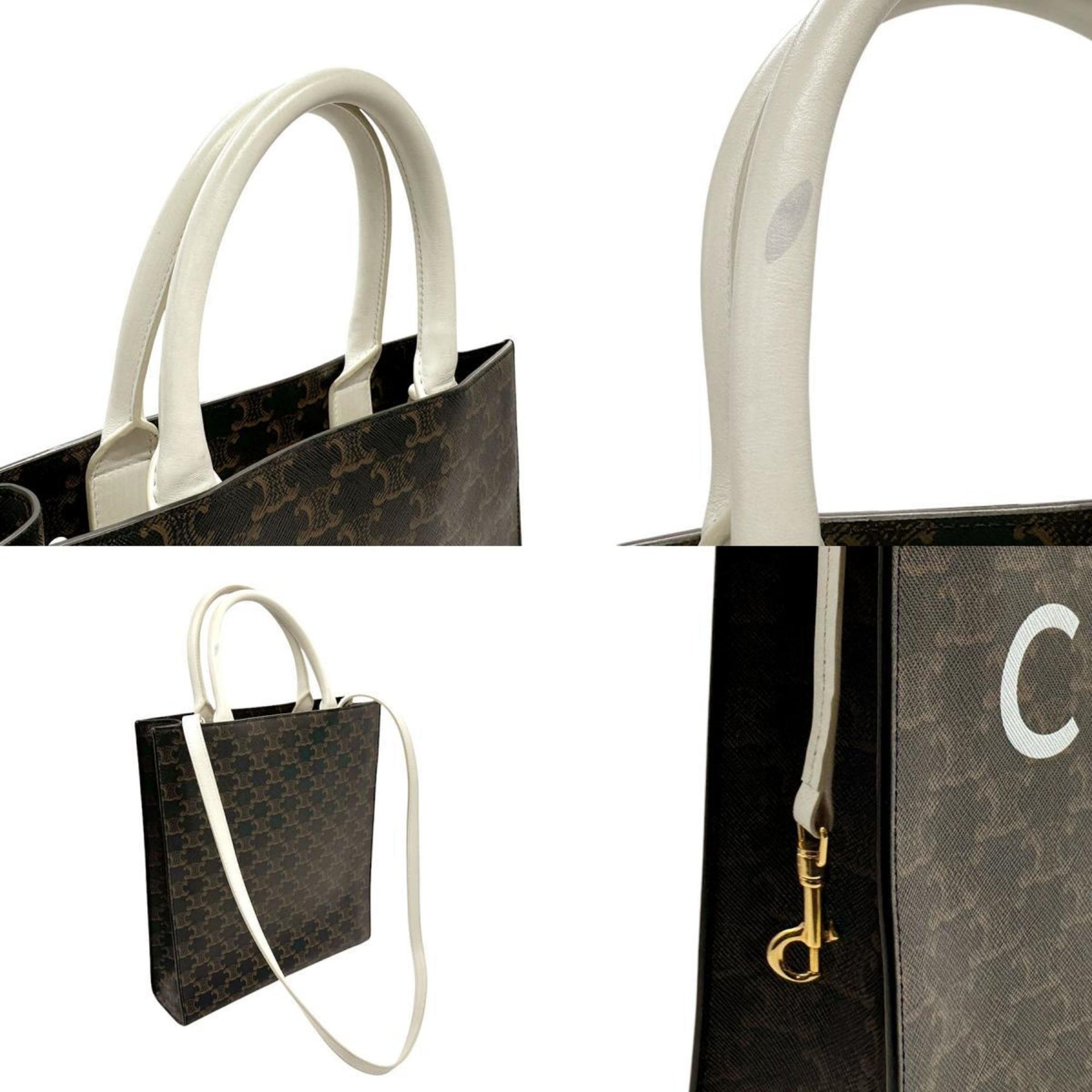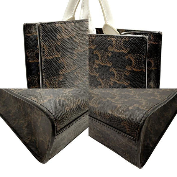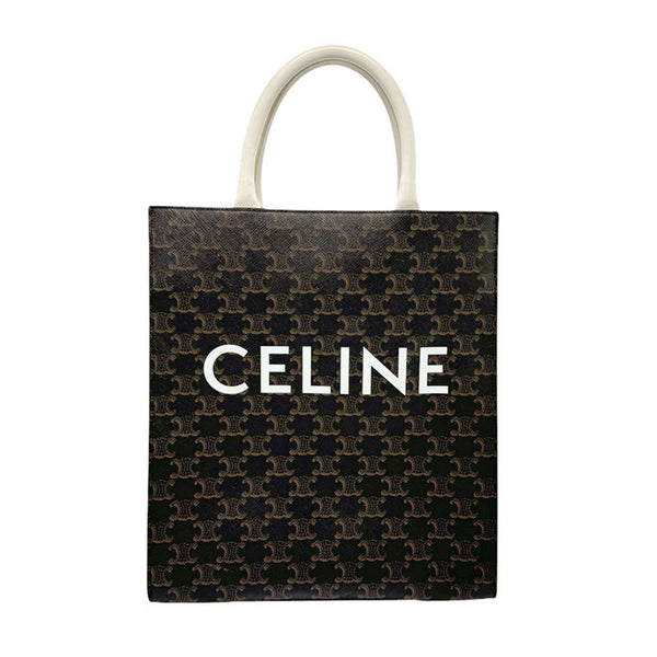 CELINE Handbag Shoulder Bag Small Vertical Cabas Coated Canvas White x Brown Men\'s Women\'s 191542 n0806